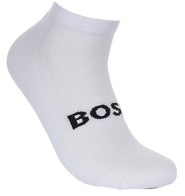 These socks feature a clean and minimalist design with the brand's iconic name, "BOSS," subtly incorporated into the look. The bold, contrasting logo is strategically positioned to showcase a modern, stylish aesthetic, while retaining an understated elegance. The socks are designed with a low-profile cut for a refined and sporty appeal, ideal for pairing with trainers or casual shoes.