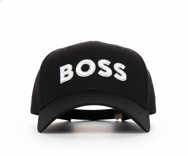 The cap boasts a classic black design, which is both timeless and adaptable to various outfits and occasions. It features bold "BOSS" embroidery in contrasting white lettering on the front, adding a touch of sophistication and a premium feel. This detail makes it an eye-catching yet understated addition to your wardrobe.