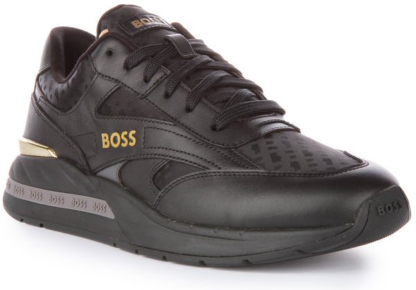 Featuring mixed material upper in leather and monogram jacquard material, these lightweight trainers feature lace up closure for a perfect and secure fit. These trainers are fully lined and has slip-resistant synthetic outsole for stability in every step. Finished with cushioned midsole for ultimate comfort, these trainers are ideal for everyday use.