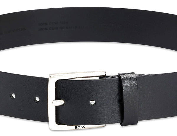 This is an authentic classic leather belt from BOSS. It features a squared buckle and tongue closure for a perfect and adjustable fit. Completed with embossed BOSS logo at the front, this is a perfect belt for any casual or smart occasion.