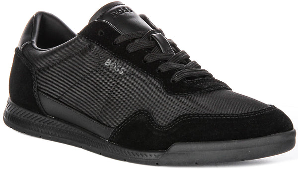 These trainers are expertly constructed with a combination of suede and mesh outer materials, ensuring an appealing balance between luxury and breathability. The smooth suede overlays enhance the durability of the shoe while providing a touch of elegance, and the mesh panels contribute to a lightweight, airy feel, ideal for all-day wear. The subtle branding with the Boss logo is tastefully placed, adding a signature touch without being overly bold.