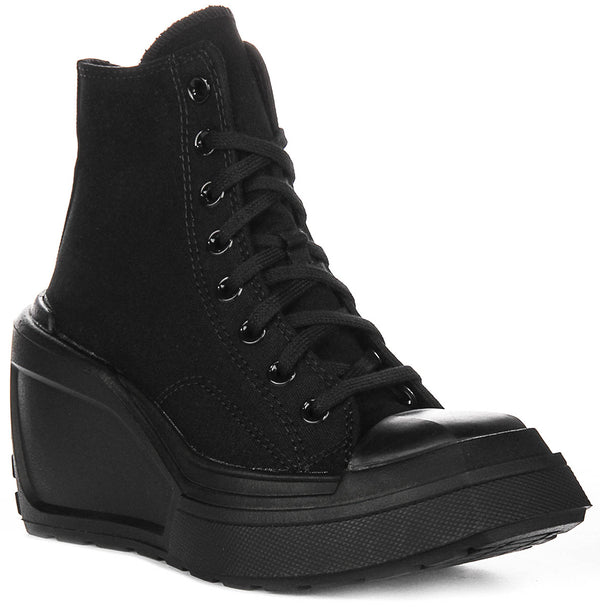 Presenting the Converse Women's Textile Wedges, a stylish and contemporary addition to your wardrobe. Built with distinctive design elements that epitomize Converse's iconic style, these wedges combine fashion with functionality, making them a standout piece in any collection. The sleek black colour adds a touch of elegance, allowing these shoes to effortlessly complement a wide range of outfits.
