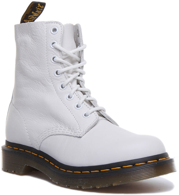 Dr Martens 1460 Pascal Virginia 8 eyelet boot is made of Virginia leather. Virginia is a soft, fine-grained leather that is treated to make it smooth and supple. Built on Dr Martens' iconic and comfortable air cushioned sole, these boots are Goodyear welted lines heat-sealed at 700°C and reinforced with Dr Martens' signature welt stitch. Stand out from the crowd this season with these classic boots.