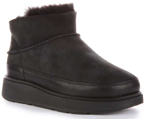 Made from high quality double faced shearling suede, leather upper, these boots are breathable, thermo-regulating and super soft. It features shearling footbed for added comfort, microwobbleboard midsole for cloud like cushioning and slip-resistant rubber outsole for maximum traction. Easy to pull on and off, these ultra mini boots are light, refined and versatile.