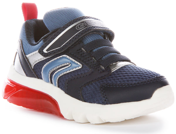 The mesh construction ensures breathability and comfort, while the built in flexy strap provides a secure fit. Available in navy red color options, these trainers offer a pop of color and fun for any outfit. With their durable build and flexible design, they are suitable for both playtime and everyday wear.