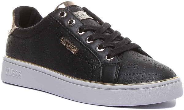 Put your foot forward in these modern lace up trainers from Guess with a round toe design. It features a synthetic material upper with rubber sole for durability and comfort. It has fabric lining and insole for added support to your feet. Finished with embossed 4G logo print, it has rubber outsole that provides excellent grip and traction. Pair them with your jeans or a casual dress for a stylish look.