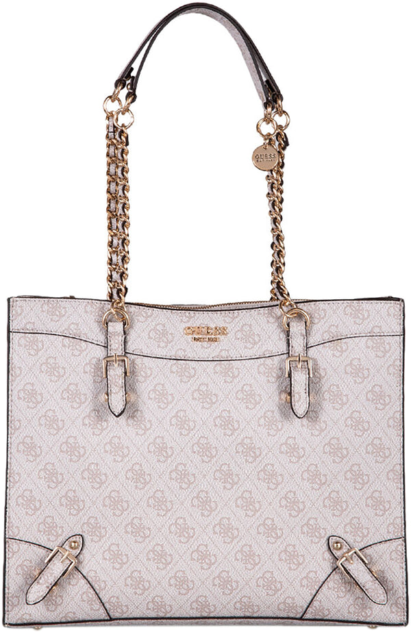 Give yourself a classic look with this Guess Didi Society tote bag. This stunning bag is made from faux leather upper with 4G logo print all over. It features dual top handles with chain detailing and zip closure. Finished with Guess branding on the front, these handbags are ideal for everyday use.