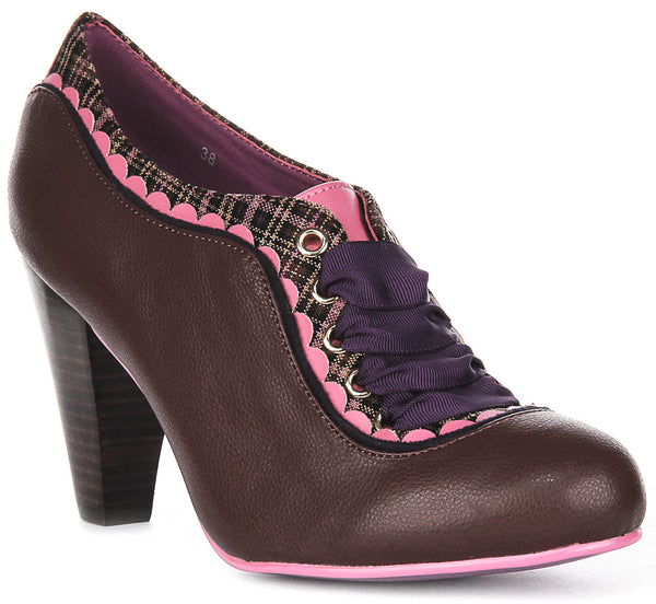 Introducing the "Classico" Heel Shoes by Bed Of Roses, a captivating choice for the stylish woman seeking an elegant touch in her footwear collection. These shoes are crafted from high-quality synthetic material, ensuring durability while maintaining a sophisticated appearance. The rich brown hue forms the base of the shoe, accentuated by charming pink and purple details that add a pop of colour and personality.