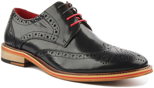 Step out in style with these versatile wooden effect derby shoes from Justin Reess. It features leather lining with statement contrast laces that are sturdy and durable. The non slip rubber sole provides stability adding good grip to the shoe. These leather brogue shoes are a modern twist to a classic design with colored trims. Perfect to wear for work or on a night out, we know you will love these stylish brogues.