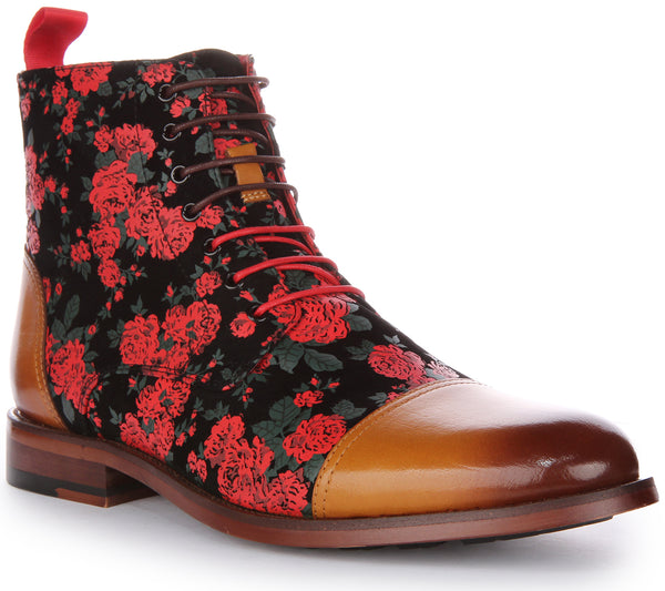 JUSTINREESS George are super comfortable ankle boots made from premium leather upper with oxford toe design. Featuring a beautiful floral print, these boots are lightweight and breathable. It has soft lining and slip-resistant outsole for durability and support. Perfect pair of boots for casual wear.