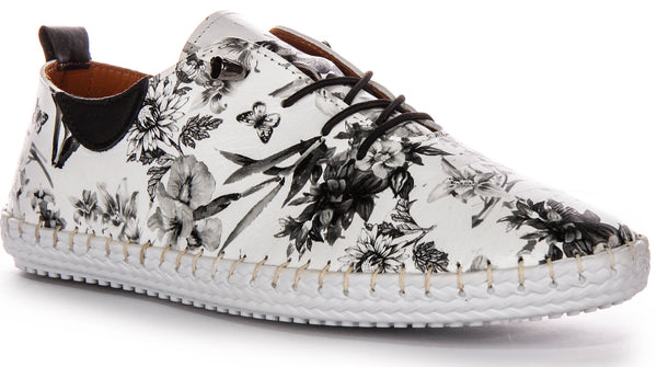 The Lexi 3 Mono Floral shoes are a fashion forward statement with a modern mono floral design. These leather shoes prioritize both trendiness and comfort, featuring a soft feel for an enjoyable wearing experience. The bold contrast of White and Black colors adds an edgy and contemporary flair.