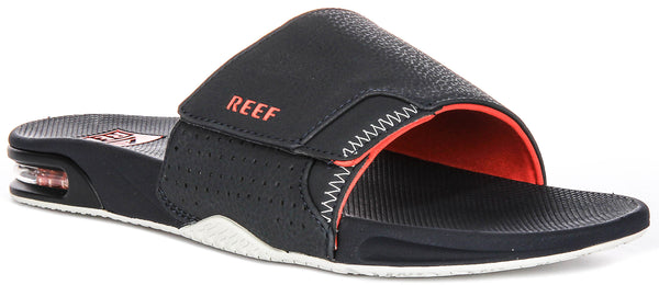 Designed specifically for men, the Fanning Slide provides a tailored fit that hugs the foot securely. The bold black outer is complemented by striking orange-red Reef branding and a white outsole for a contemporary look that’s both sporty and versatile.