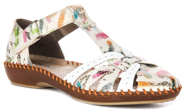 These sandals feature a synthetic outer material with a striking multi-coloured pattern, making them both eye-catching and versatile. The floral-inspired design is vibrant yet subtle enough to pair effortlessly with a wide range of outfits, from casual summer dresses to everyday jeans or shorts. The combination of white straps and the colourful pattern adds a contemporary touch to these sandals, ensuring they stand out in your footwear collection.