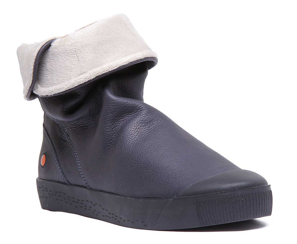 The deep navy color adds a sophisticated touch to your look, making these boots a versatile addition to any wardrobe. The boots feature a cushioned insole and a soft lining that ensure maximum comfort and support throughout the day. The sturdy sole offers excellent grip and stability, making them ideal for various activities and terrains.