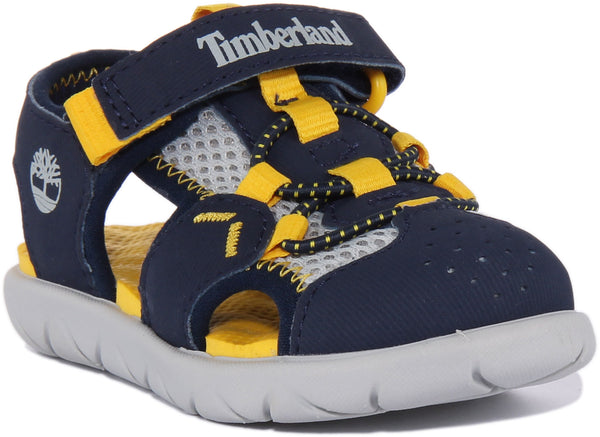 These kids’ Perkins Row Fisherman sandals from Timberland are made from synthetic leather and ReBOTL recycled fabric for less impact on the environment. It features hook and loop closure for adjustable and secure fit. Tiny feet stay supported and cushioned by the EVA footbed and outsole. Perfect sandals for kids for a day out.