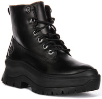 The boots are designed with a sturdy, chunky sole that boasts deep treads, offering excellent traction and grip across various surfaces. The sole enhances comfort with additional cushioning and support, making these boots suitable for all-day wear, whether in urban environments or countryside adventures.