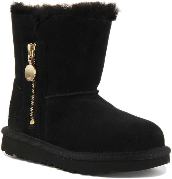 This kid’s Bailey Boot is more versatile than ever, featuring a convenient lateral zipper for easy on and off. These boots are lined with sheepskin and signature Uggplush wool blend for comfort and warmth. Finished with a cushioned Treadlite by Ugg outsole, these boots are a perfect choice for all day wear.