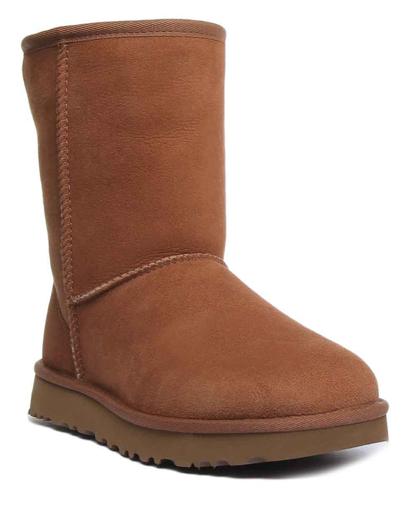 Overlock stitch on seams lend this classic boot a laid-back, California vibe and offers the soft feeling lined with sheepskin and built on a lightweight sole. Made from twinface sheepskin and suede upper, it features slip on closure for easy on and off and sheepskin insole provides extra warmth. These versatile boots pair well with practically anything, try loose boyfriend jeans and a velvet top.