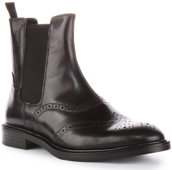 Add some style to your look with this Vagabond Amina brogue style chelsea boots. This classic and sophisticated ankle boot features premium smooth leather upper for durability, textile lining for added comfort and elasticated side panels with heel pull tab for easy on and off. Rubber soles provide stability and good grip on most surfaces. Formal or casual, this boot will go with everything.