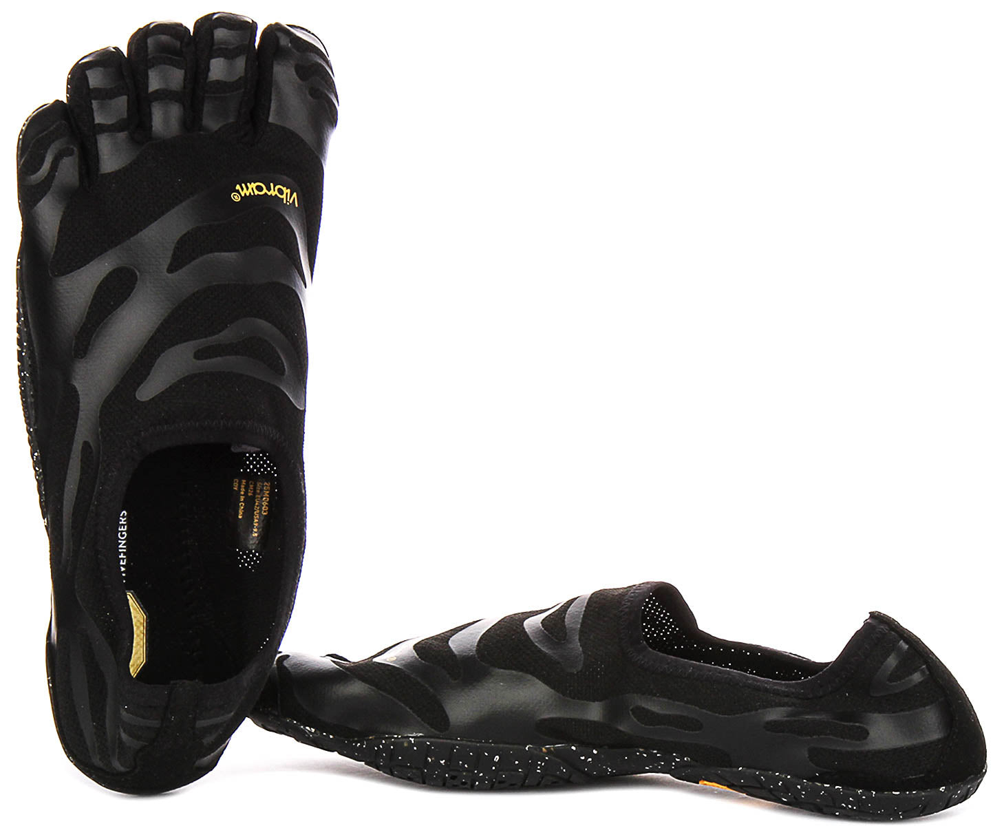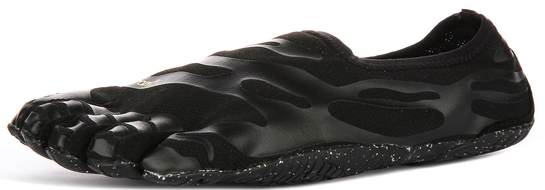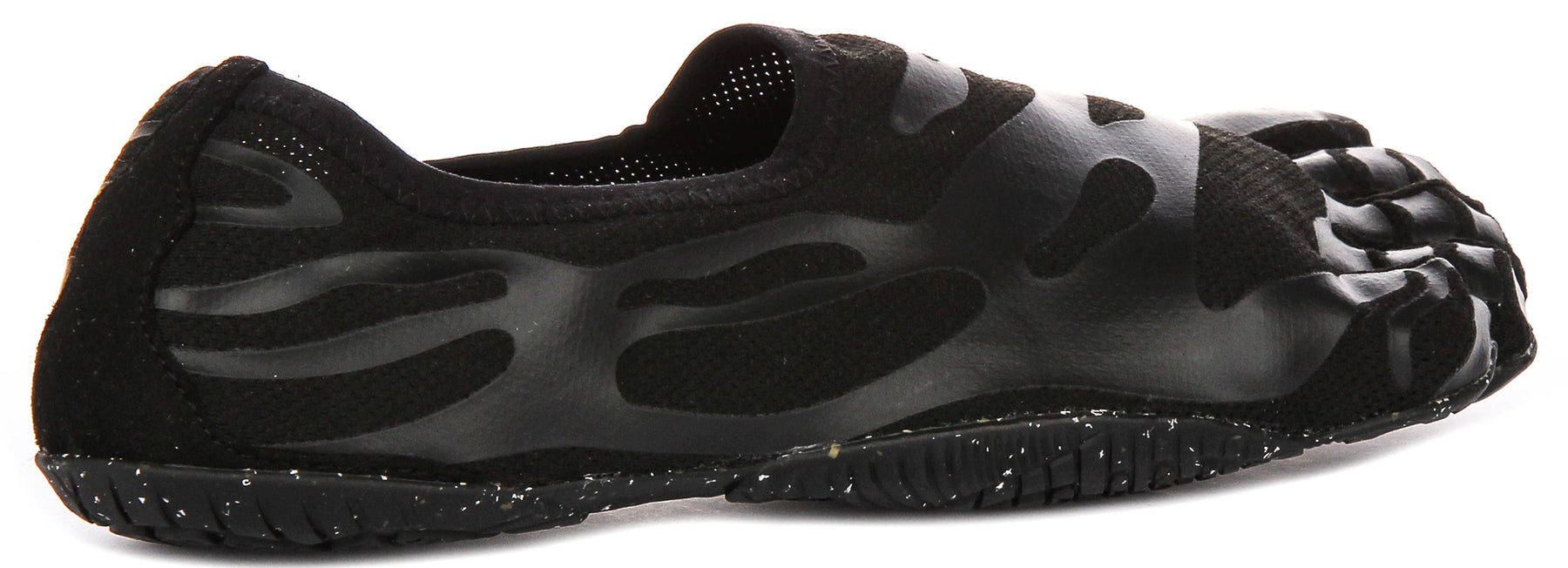 Hergestellt aus einem hochwertigen synthetischen Obermaterial, besticht der Graspifier durch ein schlankes, völlig schwarzes Design, das ihn zu einer vielseitigen Ergänzung für jede aktive Garderobe macht. Das Obermaterial besteht aus einem atmungsaktiven, netzartigen Stoff, ergänzt durch markante wellenförmige, schützende synthetische Überzüge, die ein dynamisches Muster über dem Fuß schaffen und sowohl Flexibilität als auch Unterstützung gewährleisten. Das Design integriert nahtlos die revolutionäre Fünf-Zehen-Trennung, die es jedem Zeh ermöglicht, sich unabhängig zu bewegen.