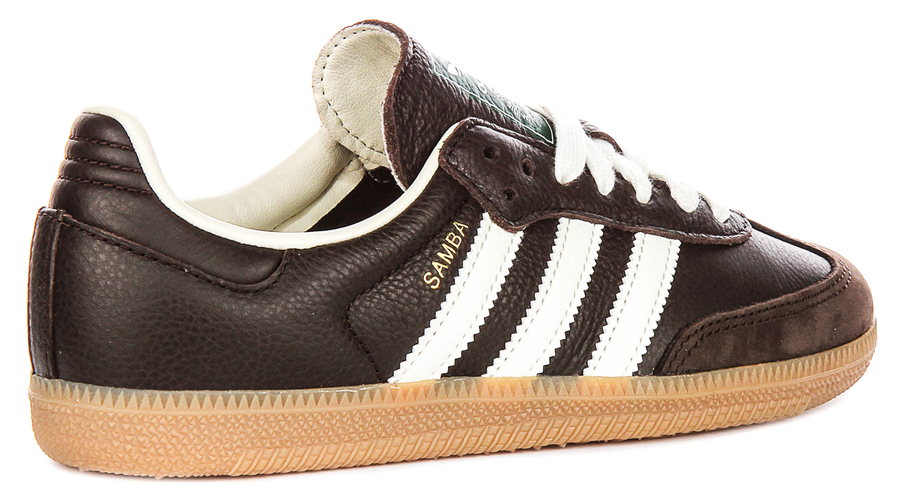 Elevate your casual wardrobe with the iconic Adidas Samba Og Mens Trainers. These classic trainers showcase a rich, deep brown upper crafted from premium leather, offering both a luxurious feel and lasting durability. Designed for men who appreciate timeless style, the Samba Og seamlessly blends sporting heritage with everyday wearability, making them a superb addition to any footwear collection.