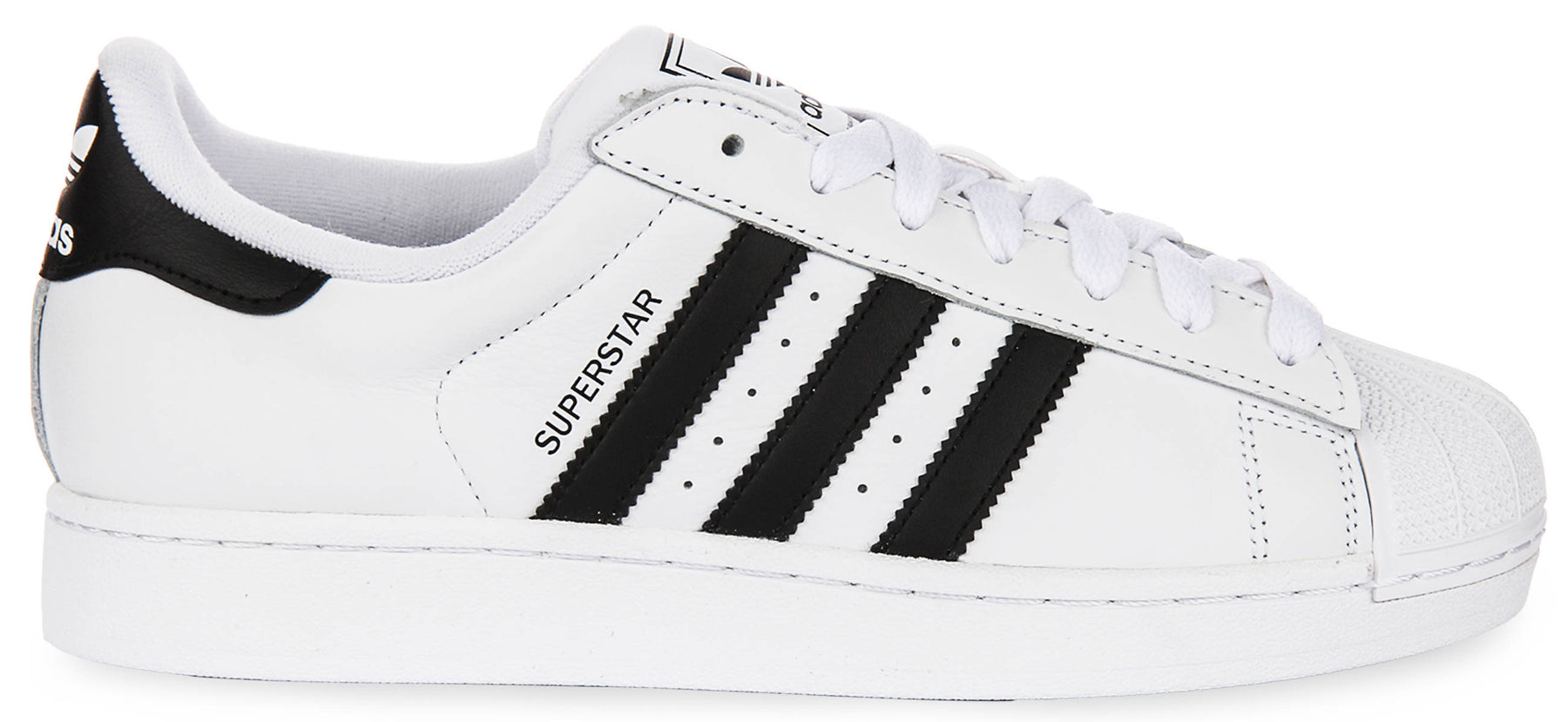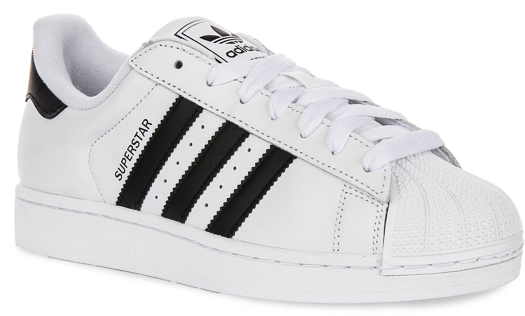 Designed as a unisex shoe, the Adidas Superstar II caters to all, offering a universally appealing aesthetic. The robust white rubber sole unit provides reliable traction and cushioning, featuring a durable herringbone-style tread pattern on the outsole for optimal grip on various surfaces. Whether paired with jeans, shorts, or casual dresses, these trainers are an enduring symbol of urban cool, ready to complete any casual ensemble with an authentic Adidas touch.