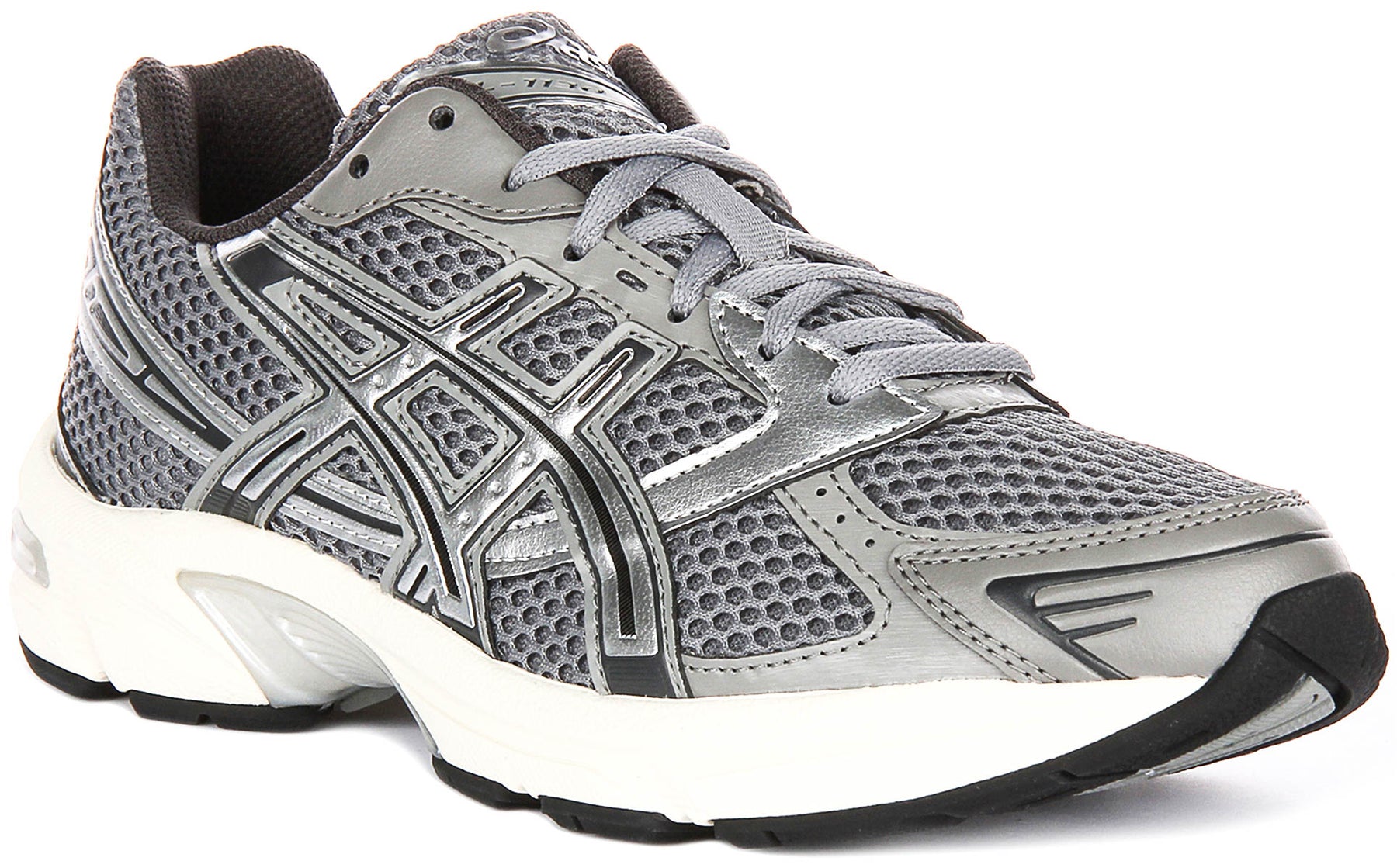 These trainers come in a versatile and stylish grey colourway, accentuated by metallic silver detailing and the iconic Asics side stripe branding. The robust rubber outsole features a unique tread pattern, providing superior traction and grip on various surfaces. The trainers are finished with signature GEL cushioning technology in the midsole, which helps absorb shock and ensures a smooth, responsive stride with every step.