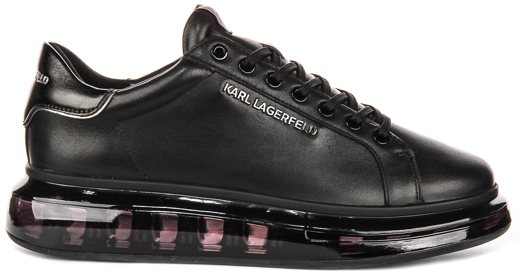 Introducing the Karl Lagerfeld Kapri Kushion, a premium pair of men’s leather trainers that blend sleek design with everyday comfort. Finished in a sophisticated all-black palette, this modern low-top silhouette delivers a refined take on street-luxe style while showcasing the brand’s distinctive aesthetic.