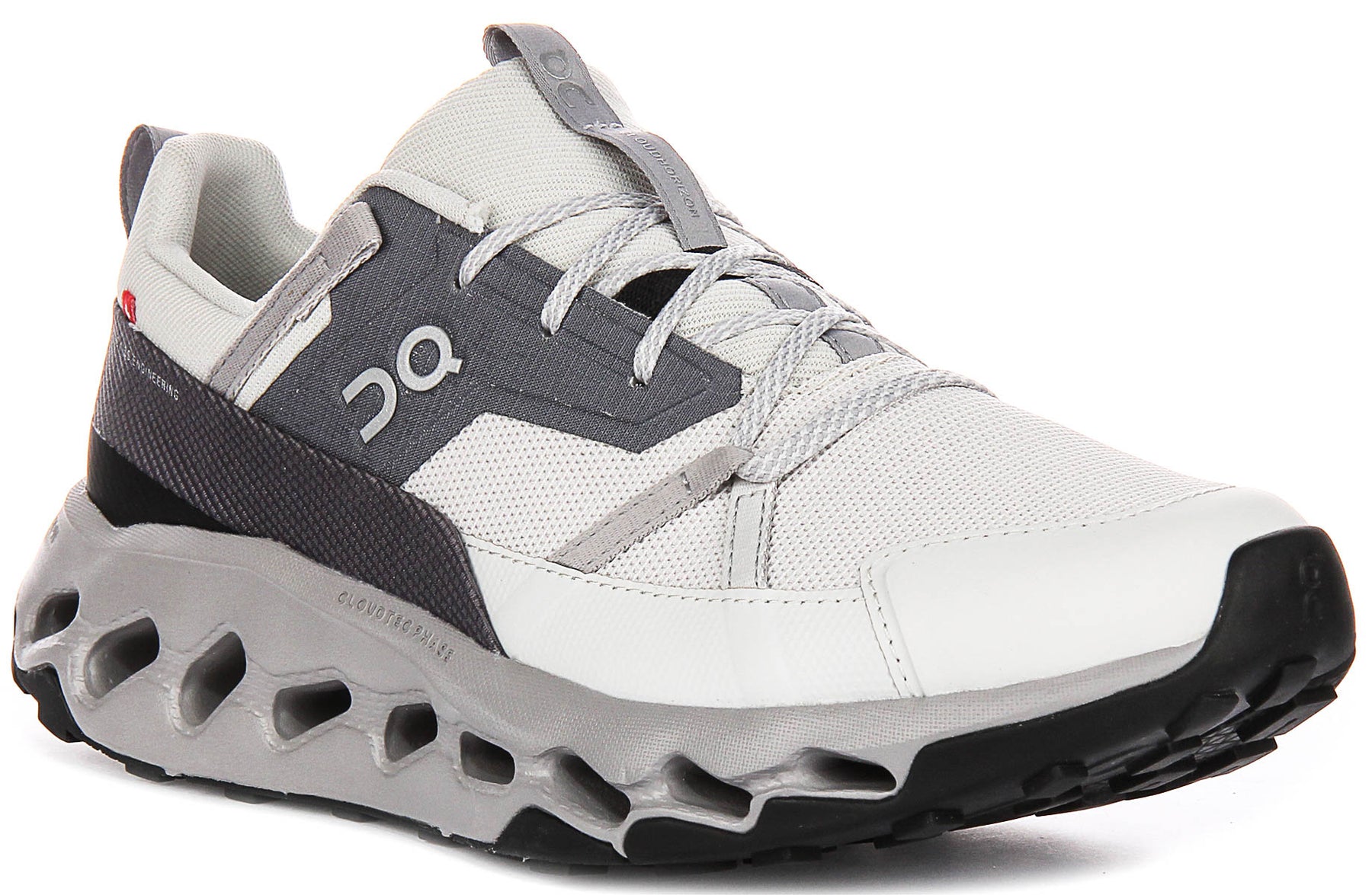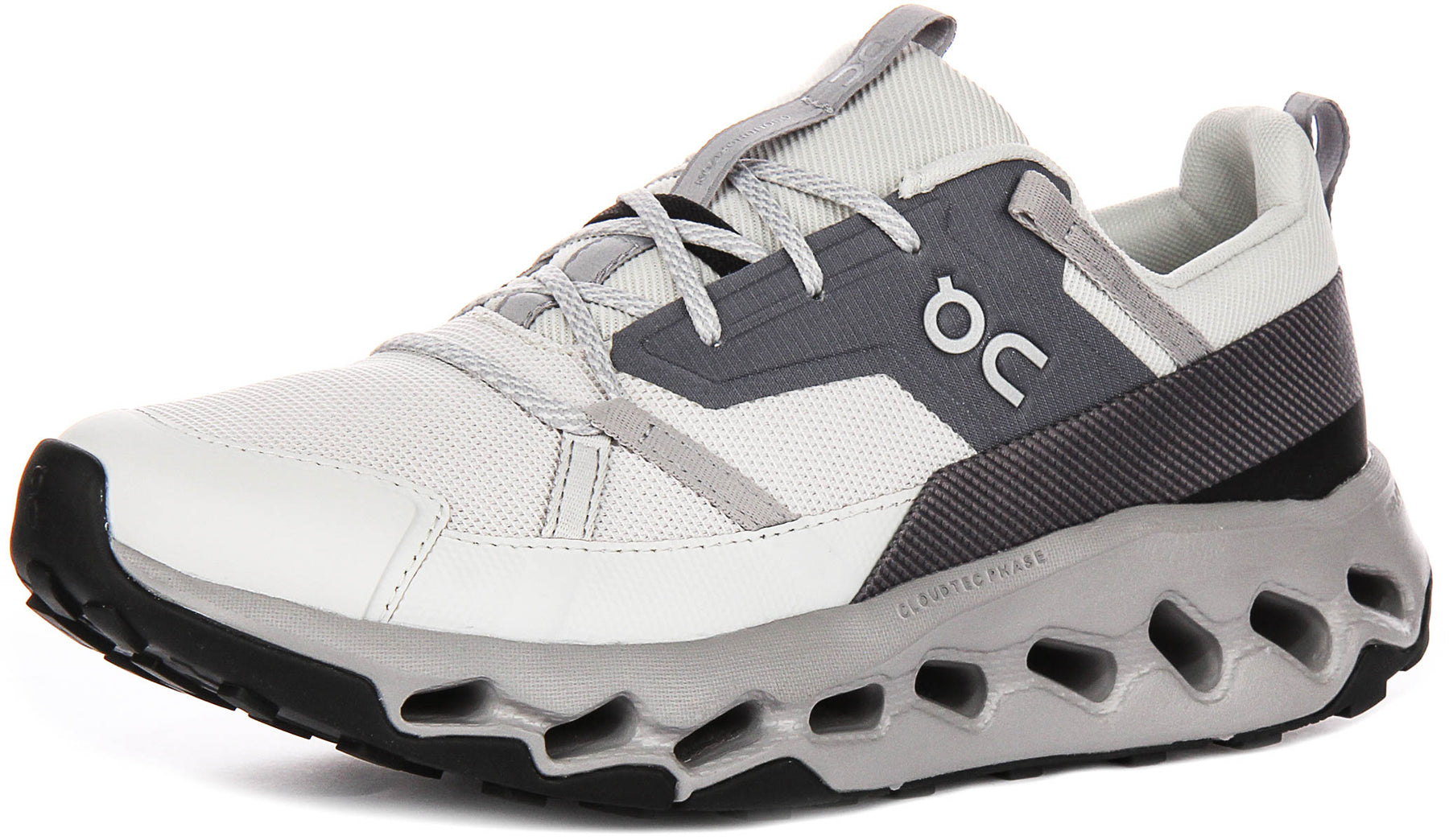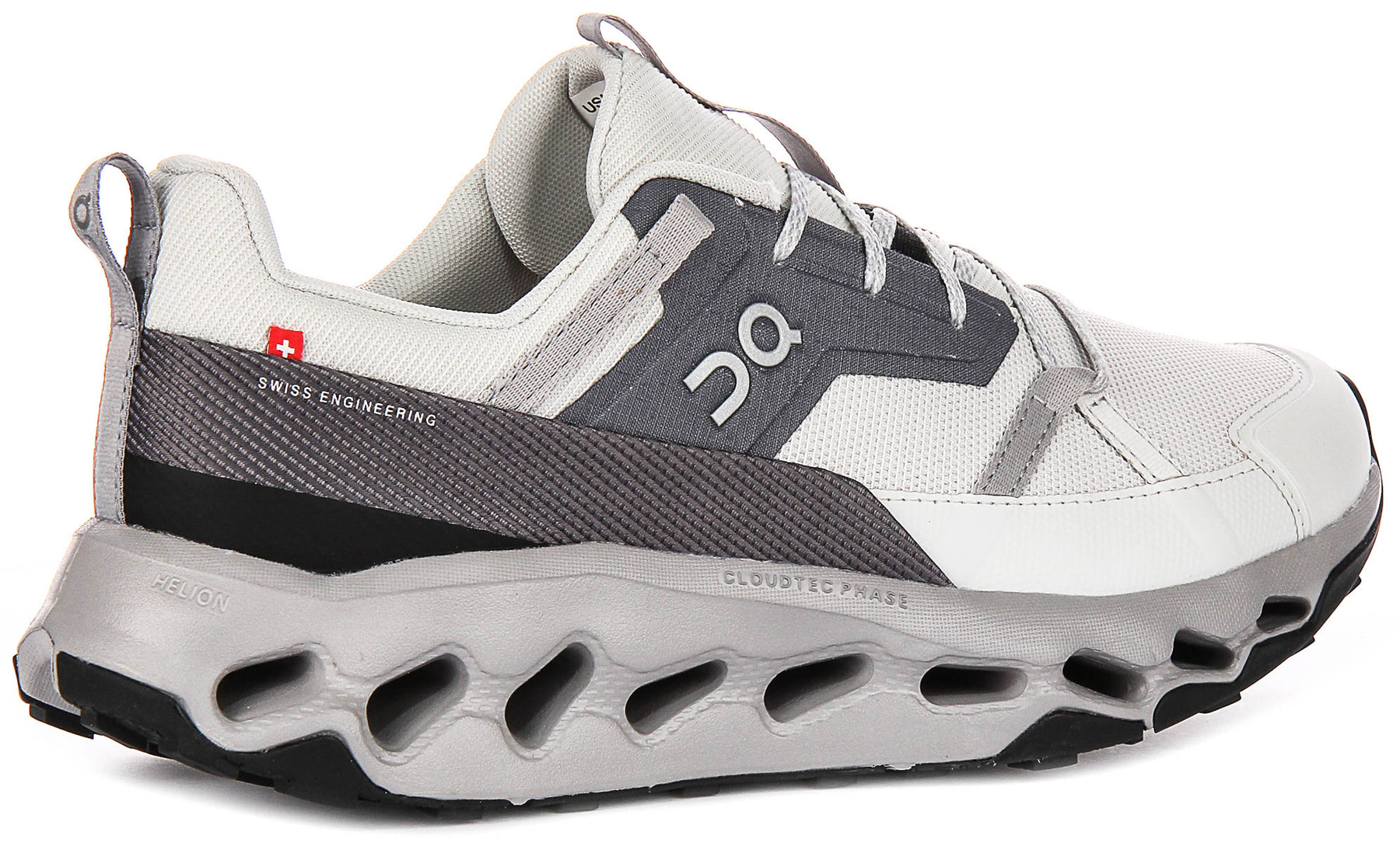 On Running Cloudhorizon is a men’s mesh trainer engineered for cushioned comfort from city streets to light trails. Finished in a clean light grey, dark grey and white colourway, it blends modern Swiss design with everyday versatility and performance.