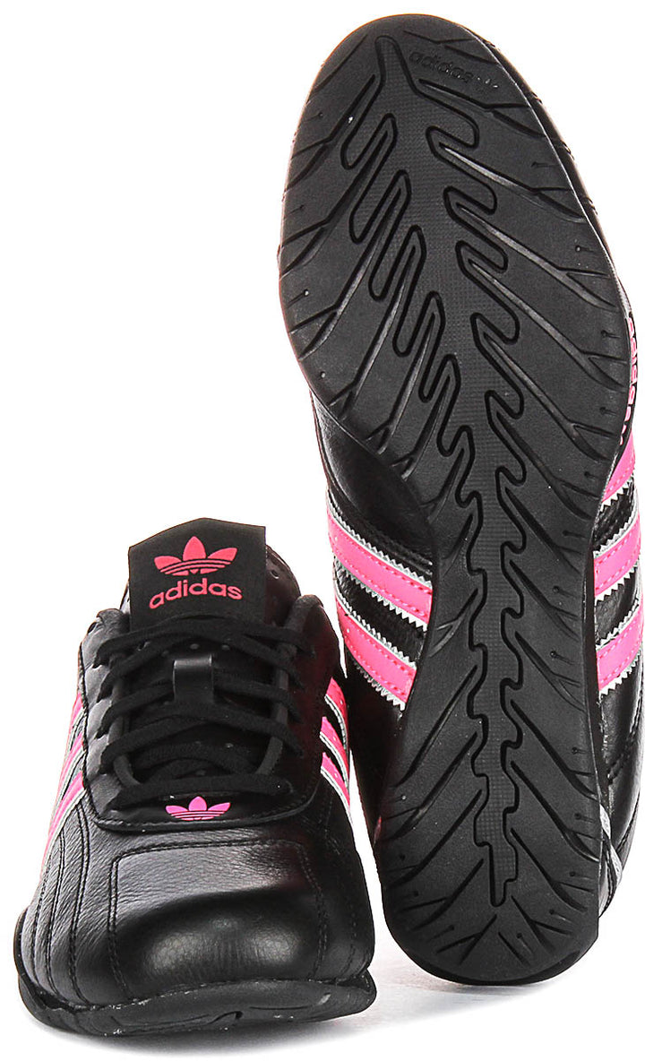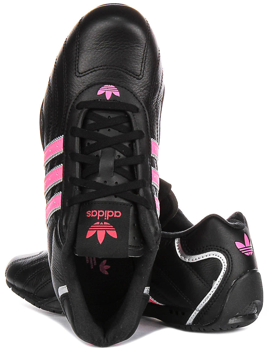 Fabricadas con una parte superior de cuero premium, las Adiracer Lo W ofrecen durabilidad y una sensación lujosa. El cuero negro es elegante y suave, proporcionando un look versátil que puede combinarse tanto con ropa deportiva como con conjuntos casuales. Los detalles sutiles de costura a lo largo de la parte superior añaden un toque de sofisticación, haciendo que estas zapatillas destaquen tanto por su calidad como por su diseño.