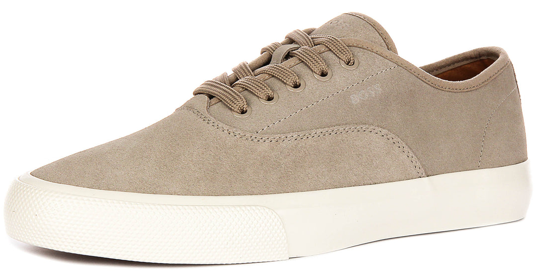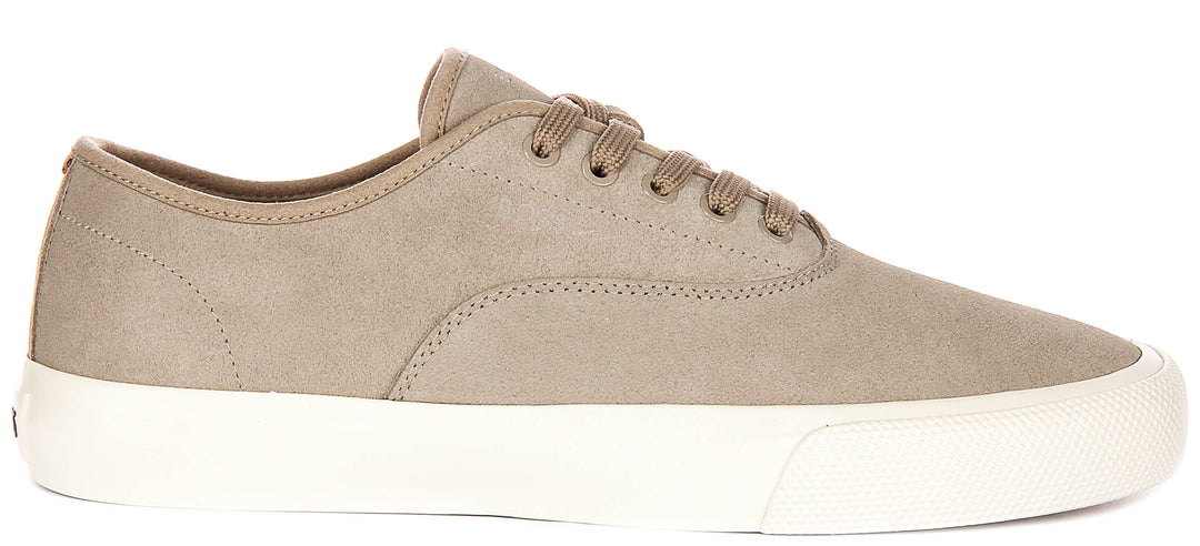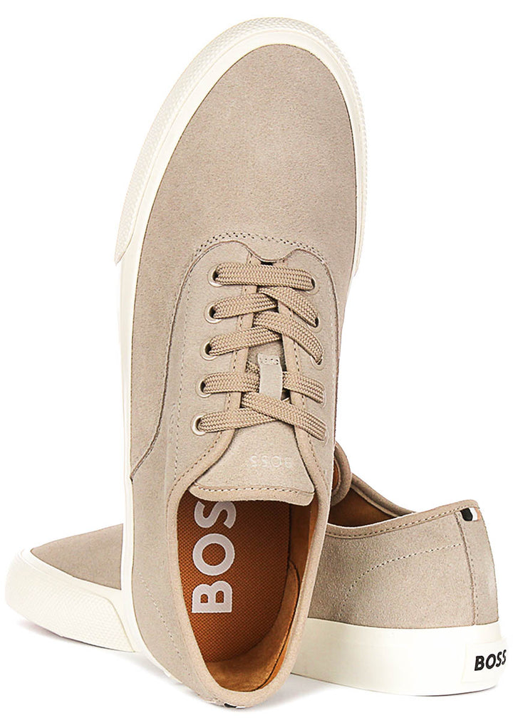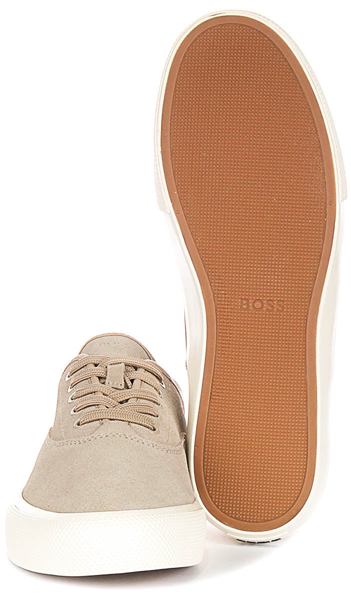 La paleta de colores de estas zapatillas es un tono versátil de marrón claro o beige, lo que las hace increíblemente fáciles de combinar con una amplia gama de atuendos. Presentan un clásico diseño de cordones para un ajuste ajustable y seguro, y están terminadas con una suela de goma blanca que proporciona una excelente tracción y durabilidad. También puedes notar sutiles detalles de marca Boss, añadiendo un toque de atractivo de diseñador sin ser exagerados.