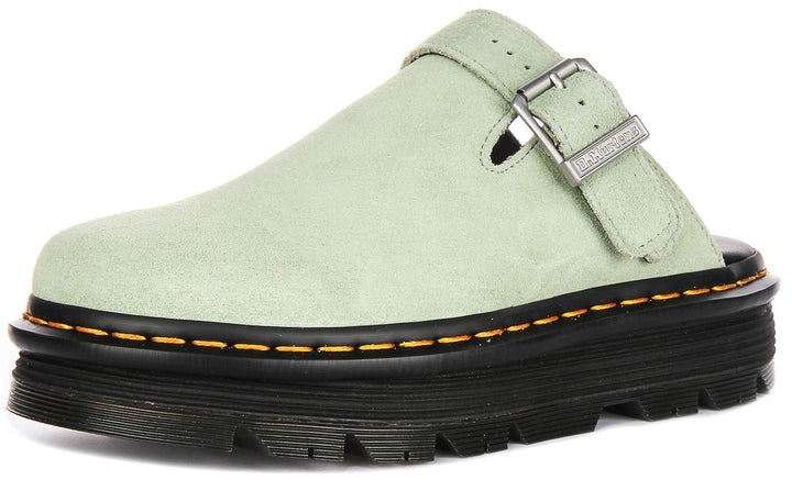 Las Zebzag Mule cuentan con una exterior de suave piel de ante, que ofrece un tacto delicado y una apariencia refinada. Su sutil tono verde pastel es increíblemente versátil, perfecto para aportar un toque de color discreto a tus looks diarios. Con su diseño de punta cerrada y talón abierto, estas mules ofrecen una combinación de seguridad y transpirabilidad, ideales para usarse durante todo el año.