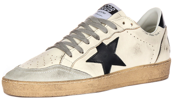 Construidas con cuero de alta calidad, el material exterior ofrece una sensación lujosa asegurando durabilidad y larga vida útil. Las zapatillas se presentan en un tono blanco roto refinado, complementado por detalles en negro contrastante. Un audaz motivo de estrella negra figura orgullosamente en el lateral, mientras que el icónico logotipo “GOLDEN GOOSE” está estampado en la entresuela, aportando a los zapatos un toque inconfundible. El acabado efecto vintage en la entresuela y la puntera añade un carácter único y desgastado que es fundamental en la estética Golden Goose.
