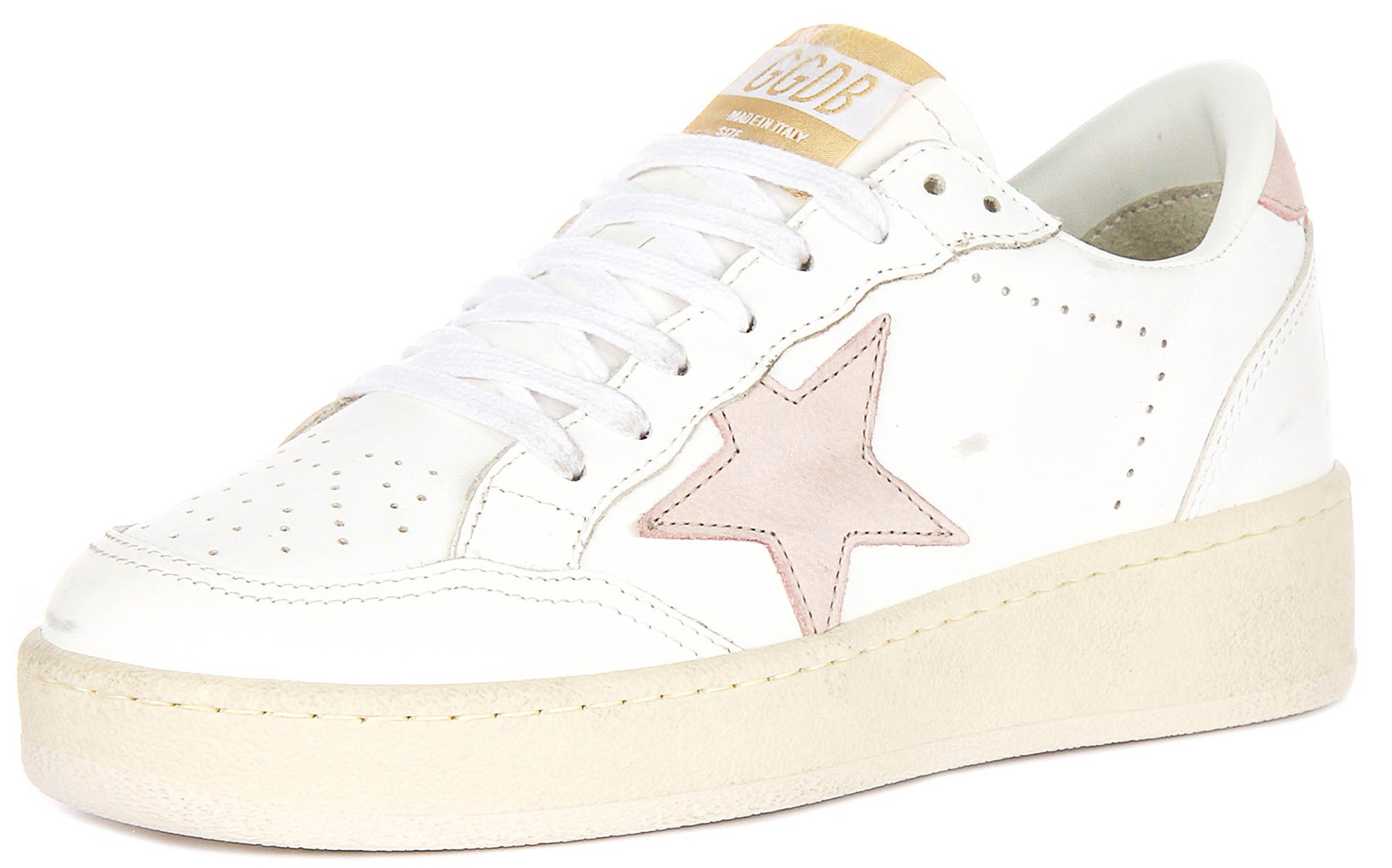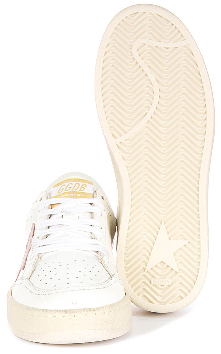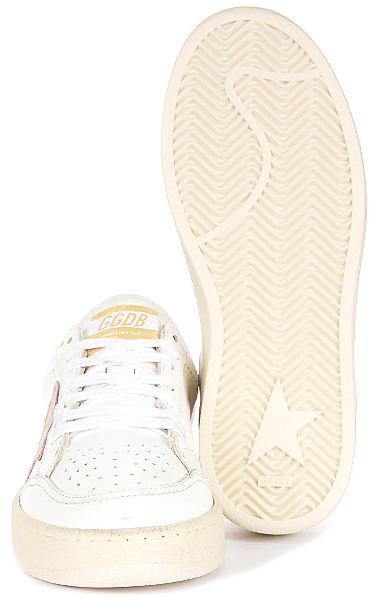 Diseñadas específicamente para mujer, las zapatillas Ballstar 2 cuentan con toques de marca como la impresión "GGDB/BALLSTAR2" en el lateral y una etiqueta dorada en la lengüeta. Las zapatillas reposan sobre una suela de goma ligeramente envejecida en color blanco roto, que proporciona una comodidad excelente y un aspecto desgastado característico de Golden Goose. El interior acolchado y el cuello con protección garantizan confort durante todo el día, haciendo que estas zapatillas sean tan prácticas como estilosas.