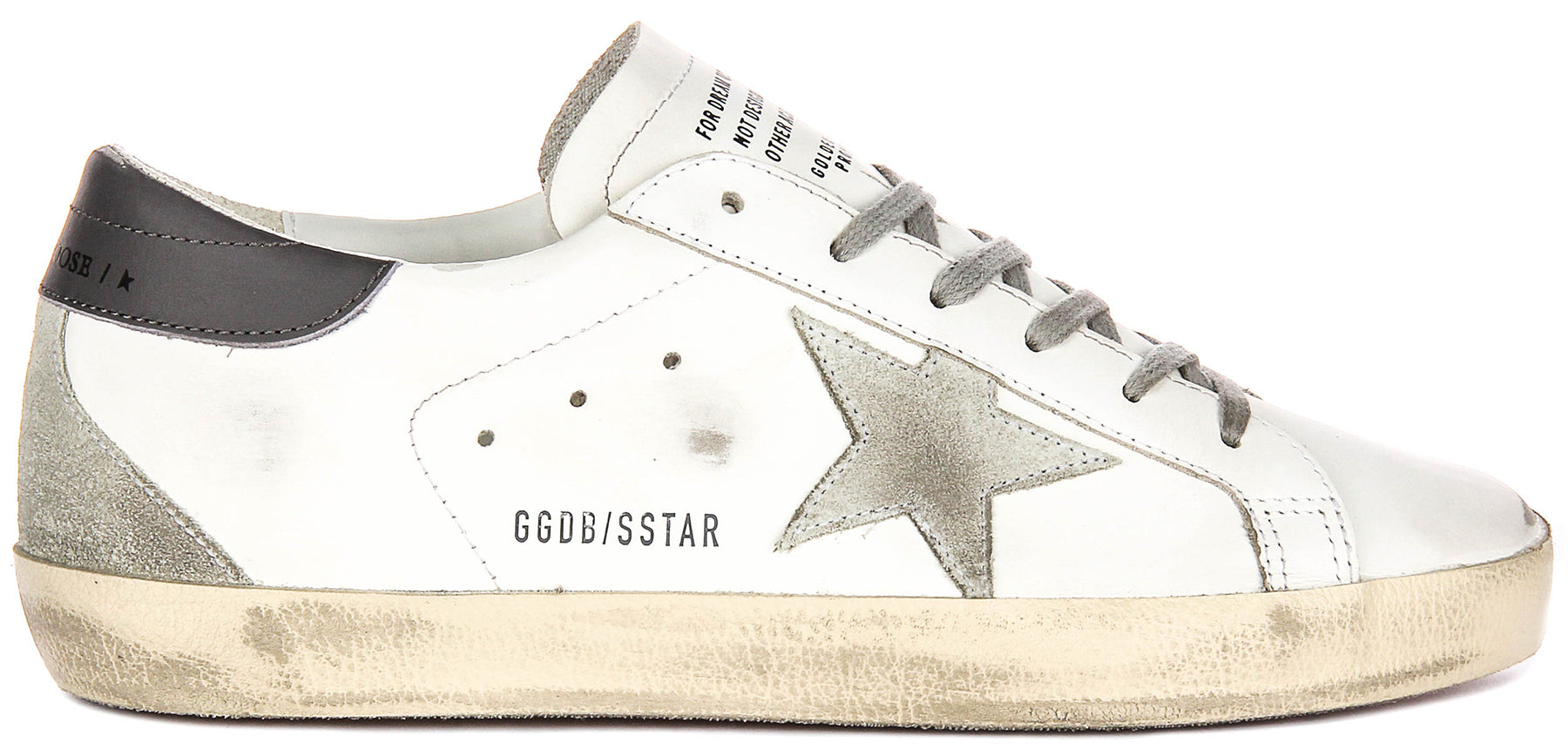 Las zapatillas reposan sobre una cómoda suela de goma color blanco hueso con inspiración vintage y suela de goma natural para un agarre fiable y durabilidad. El diseño con cordones asegura un ajuste seguro y personalizado, mientras que la lengüeta y el cuello ligeramente acolchados ofrecen confort durante todo el día. Los detalles sutiles de la marca, como la impresión GGDB/SSTAR en el lateral y el branding ‘SUPER-STAR’ en la lengüeta y plantilla, suman a la sensación de lujo.