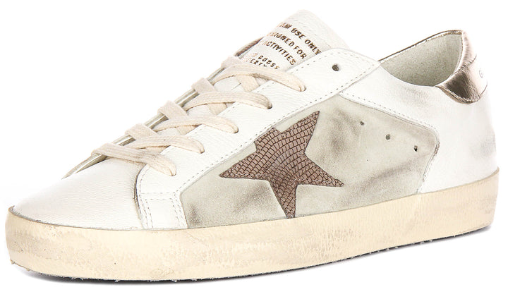 Presentamos las zapatillas Golden Goose Super-star para mujer en cuero de ante, una opción elegante para quienes valoran tanto la comodidad como un diseño vanguardista. Estas zapatillas representan la característica mezcla de Golden Goose de artesanía italiana premium y un estilo contemporáneo con acabado envejecido, convirtiéndolas en una adición destacada para cualquier guardarropa.