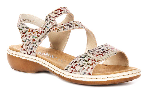 Pisa con comodidad y estilo con las Sandalias Sintéticas para Mujer Rieker, modelo 659C7-94. Diseñadas para mujeres que valoran tanto la practicidad como un toque de individualidad, estas sandalias ofrecen la combinación perfecta de estilo moderno y funcionalidad diaria. Ya sea que salgas a dar un paseo casual o busques una opción cómoda para el uso diario, estas sandalias están confeccionadas para brindar soporte duradero y un atractivo visual.