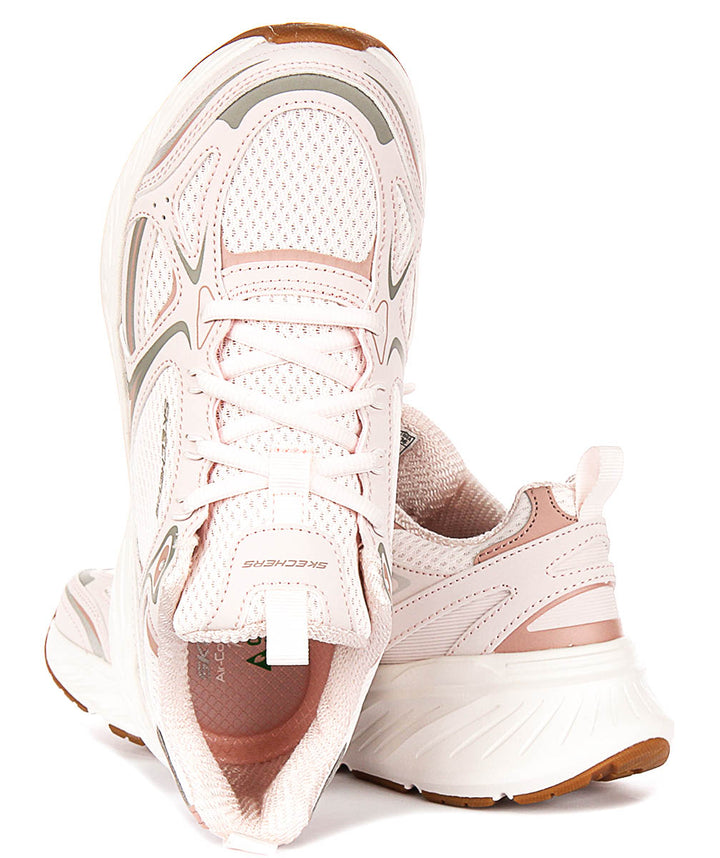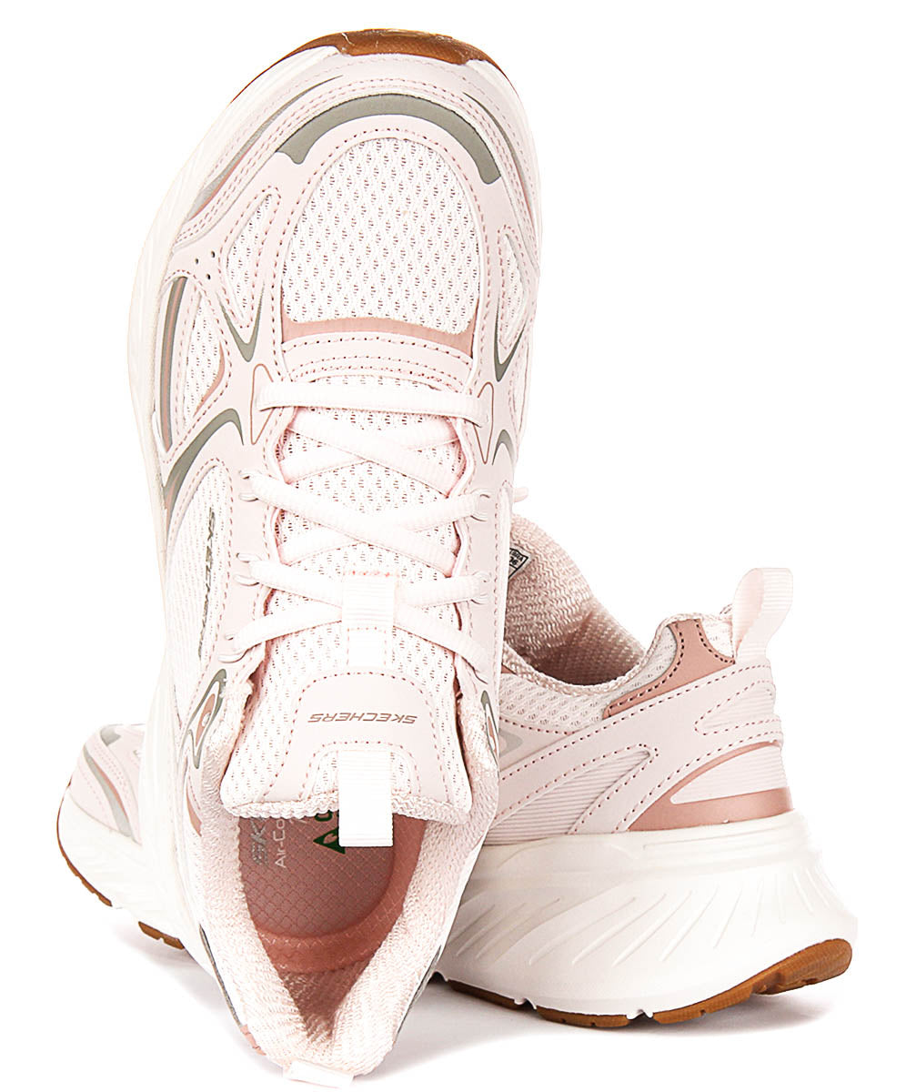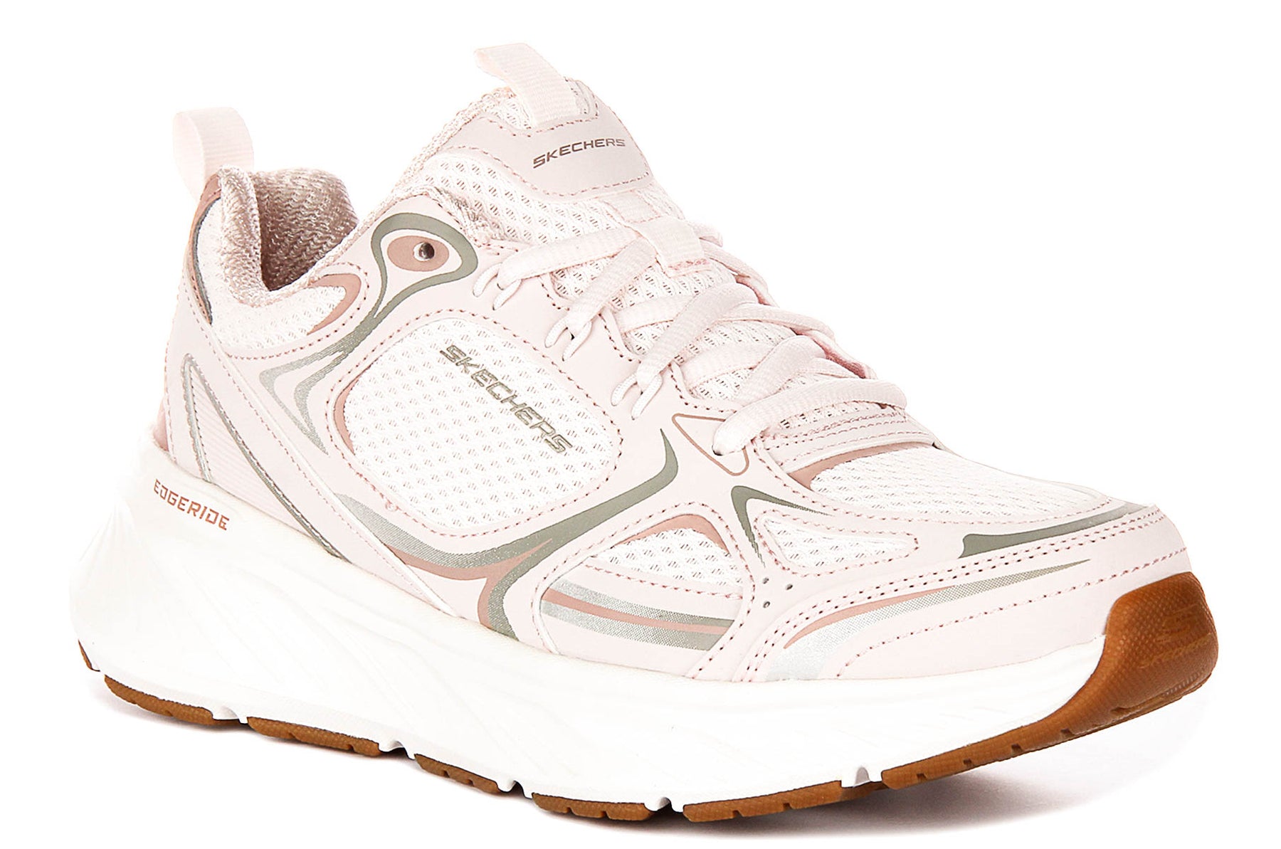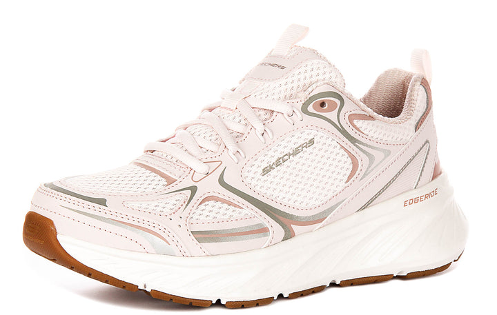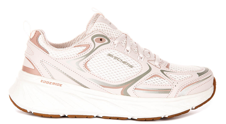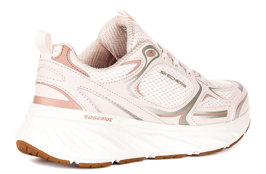 Confeccionadas con un material exterior de malla transpirable, las Edgeride Power Trainers ofrecen una ventilación superior para mantener tus pies frescos durante todo el día. La parte superior de malla no solo mejora la comodidad, sino que también añade un toque moderno al diseño general. Las zapatillas presentan un delicado tono rosa claro con sutiles detalles metálicos y neutros, proporcionando una paleta de colores suave y versátil que complementa una amplia variedad de conjuntos.