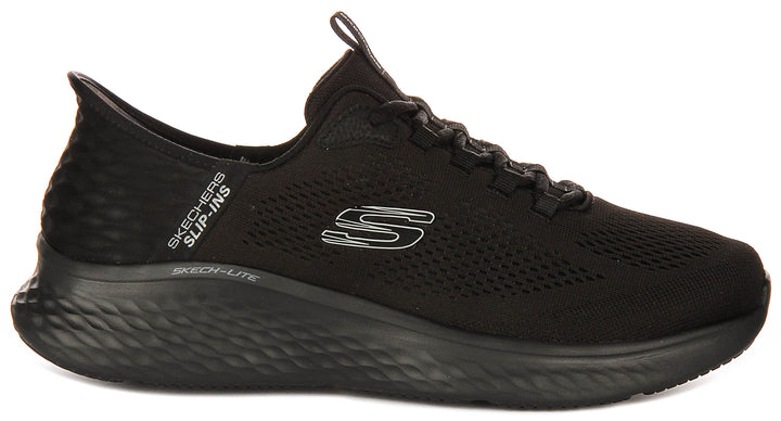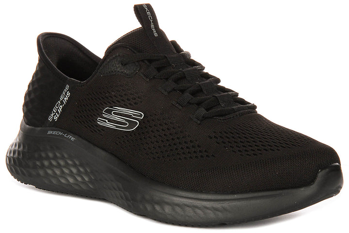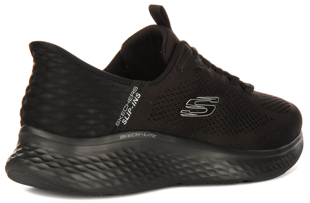Presentamos las zapatillas Skechers Skech-lite Pro Mesh para hombre, diseñadas para el hombre moderno que valora tanto la comodidad como el estilo en su calzado diario. Este elegante par viene en un color negro total, ofreciendo un look versátil que combina fácilmente con una amplia variedad de conjuntos, desde ropa deportiva hasta atuendos casuales para el fin de semana.