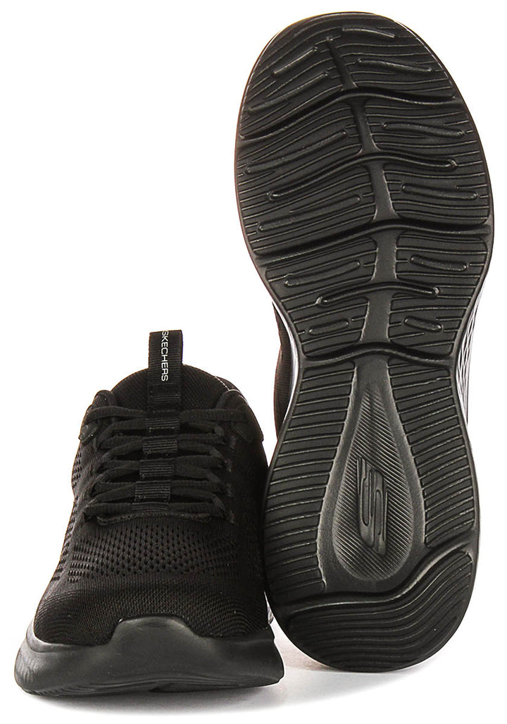 Las zapatillas cuentan con el icónico logo "S" de Skechers en tono plateado contrastante en el costado, añadiendo un toque distintivo al diseño minimalista. El cierre de cordones proporciona un ajuste seguro, mientras que el cuello acolchado y la plantilla amortiguada mejoran la comodidad general para un uso prolongado. Además, estas zapatillas cuentan con la innovadora suela Skech-lite de Skechers, que ofrece una amortiguación reactiva y una tracción confiable, haciendo que cada paso se sienta ligero y protegido.