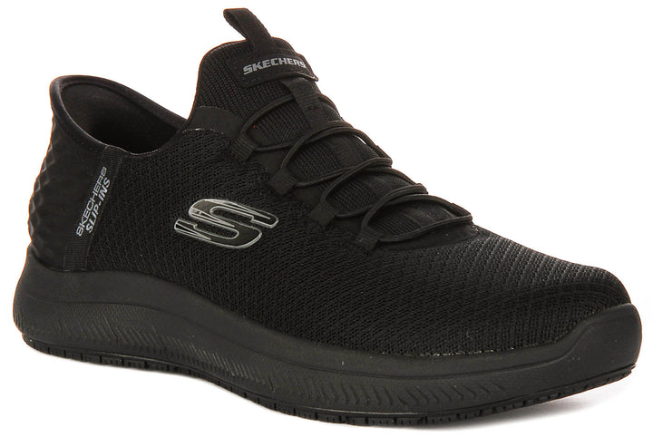 En la suela, las Summits Sr - En cuentan con una suela acolchada antideslizante, que proporciona tracción y soporte confiables en diversas superficies. Esto las hace ideales no solo para el uso casual diario, sino también para entornos más activos, como caminatas, ejercicios ligeros o lugares de trabajo donde la comodidad y la seguridad son fundamentales. La plantilla de espuma viscoelástica mejora aún más la comodidad al adaptarse a la forma de tu pie, reduciendo la fatiga y proporcionando amortiguación personalizada en cada paso.