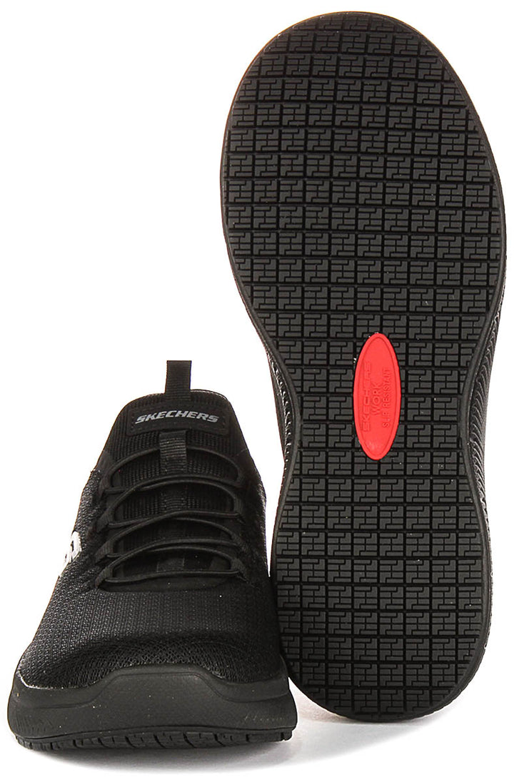 Estas zapatillas están diseñadas específicamente para mujeres, con una silueta estilizada y un ajuste femenino. El calzado presenta detalles característicos de Skechers, como el audaz logo "S" en el lateral y la marca Skechers en la lengüeta y la pestaña del talón, añadiendo un toque de sofisticación deportiva. El frente con cordones elásticos ofrece una experiencia segura pero fácil de poner, perfecta para quienes están siempre en movimiento.