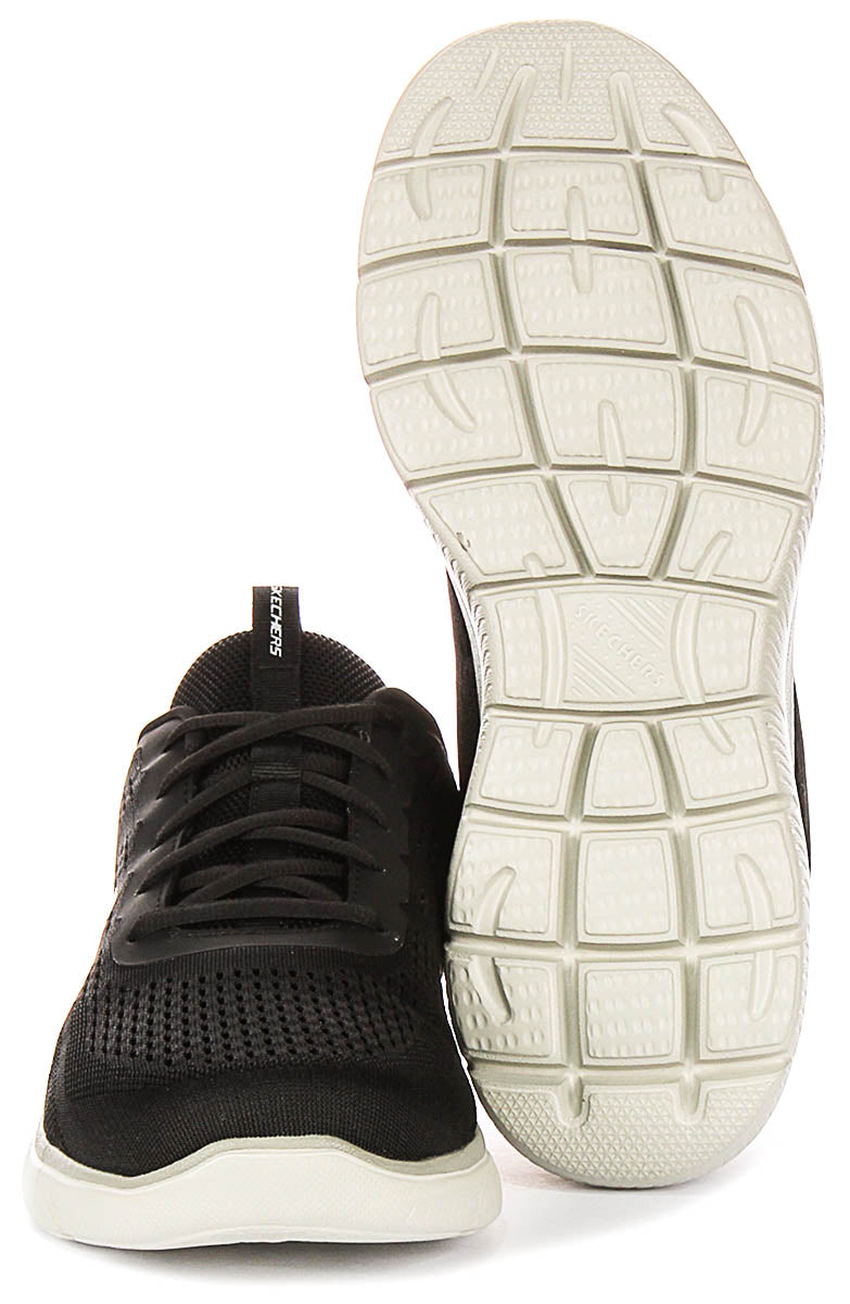 Diseñadas específicamente para hombres, estas zapatillas presentan una parte superior negra elegante, complementada por el icónico logo "S" de Skechers en un tono plateado contrastante. Las zapatillas descansan sobre una suela duradera y acolchada con un perfil moderno y ligero, que proporciona una excelente absorción de impactos y reduce la fatiga durante todo el día. El patrón texturizado de la suela también asegura un agarre y tracción fiables en una variedad de superficies.