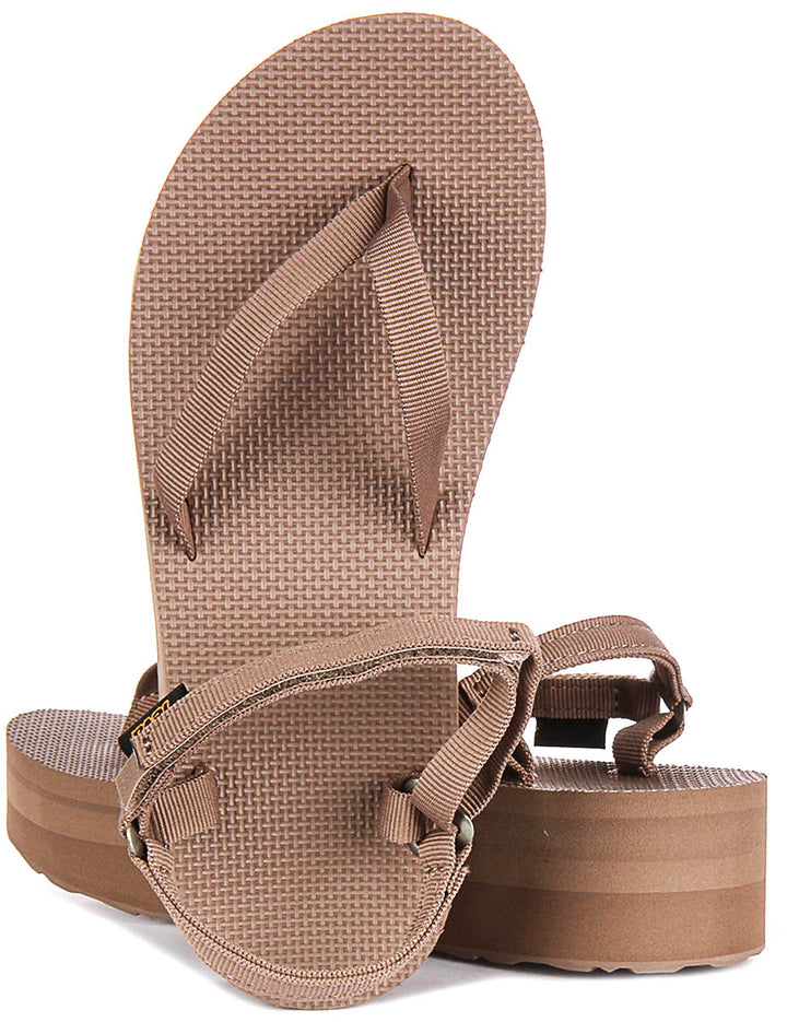 Presentamos las Sandalias Teva Flatform Slim para Mujer, una opción de calzado audaz y estilizada diseñada para quienes les gusta destacar. Estas sandalias cuentan con una suela plataforma distintiva que añade altura y un toque moderno a tu look, perfectas para realzar tus conjuntos casuales durante los meses más cálidos.