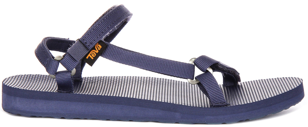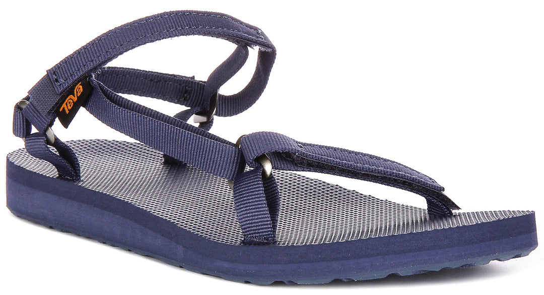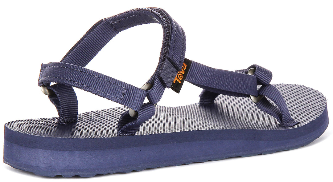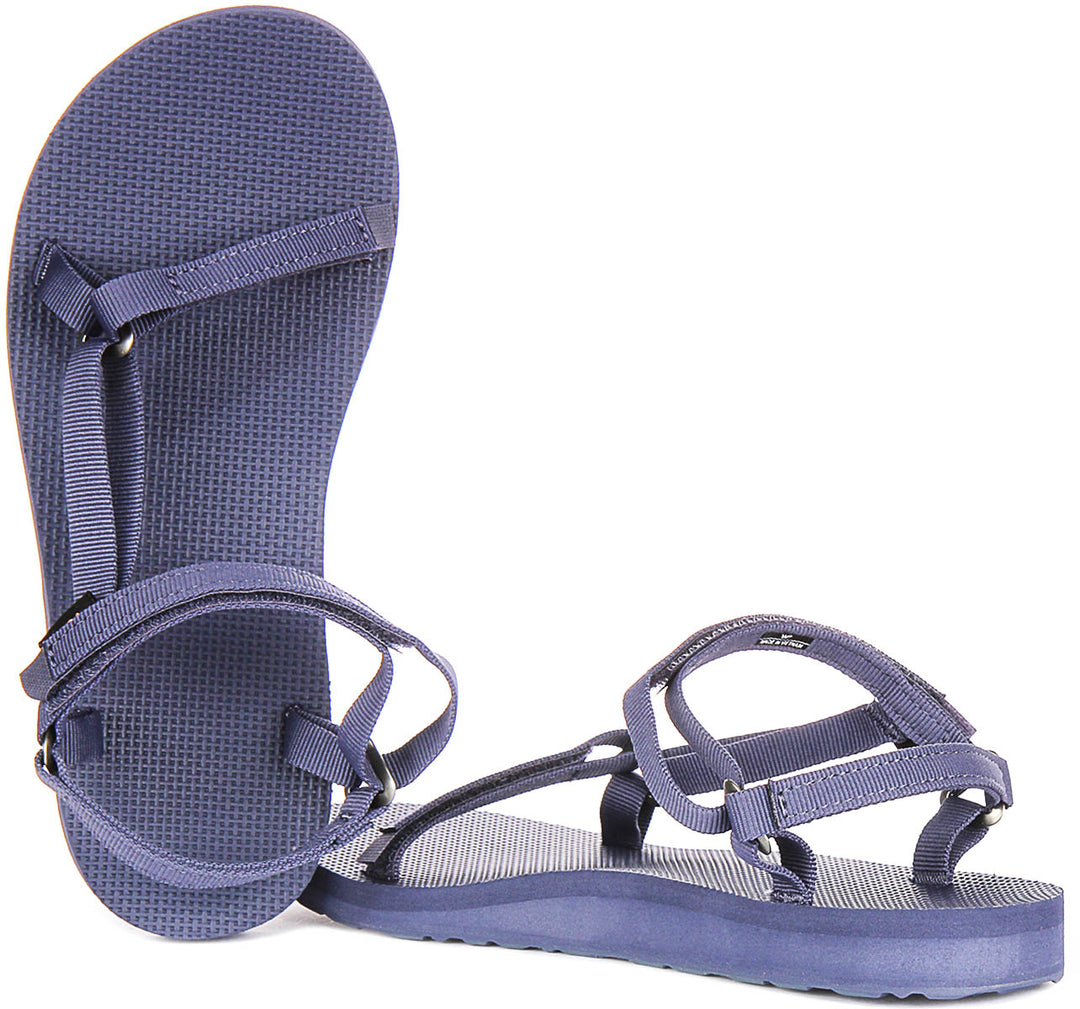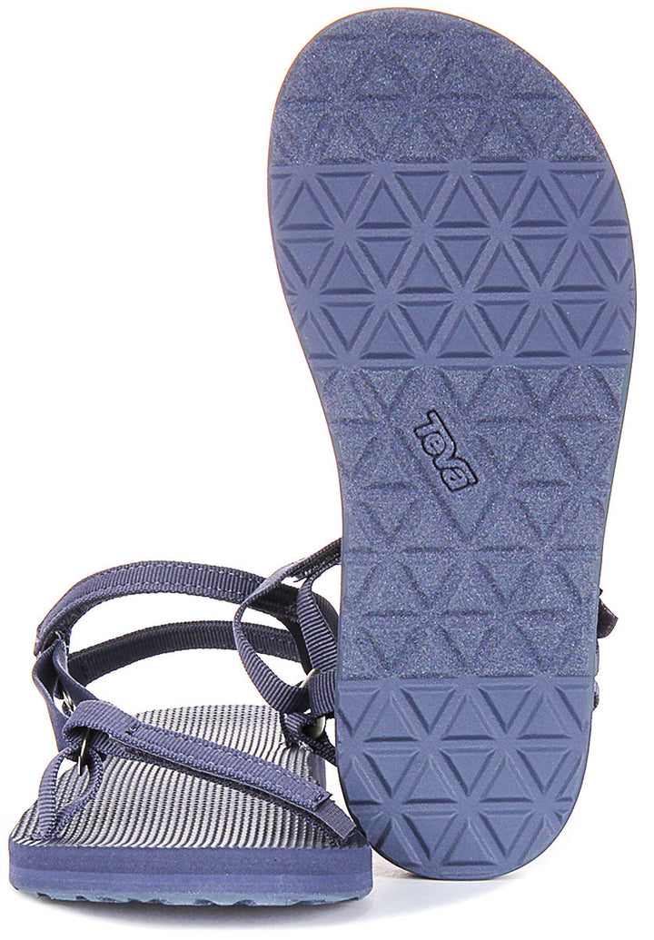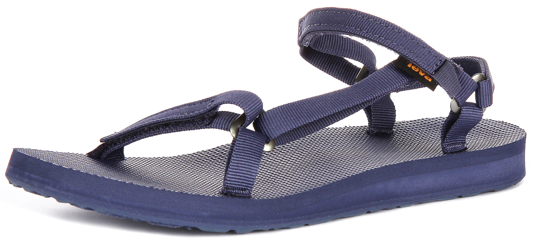El material exterior está confeccionado con una tela suave y duradera que brinda un soporte delicado al pie, mientras que las correas ajustables garantizan un ajuste seguro y personalizado. El elegante color azul oscuro, complementado por el sutil logotipo de Teva, ofrece un look chic y discreto que combina fácilmente con una amplia variedad de conjuntos, desde vestidos de verano hasta pantalones cortos y pantalones casuales.
