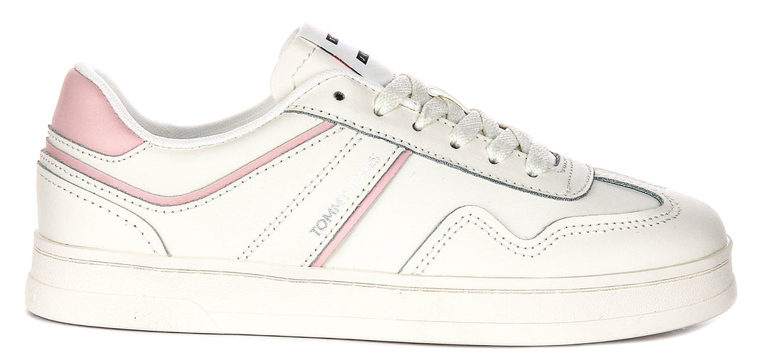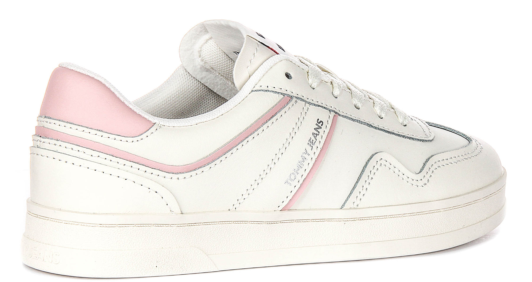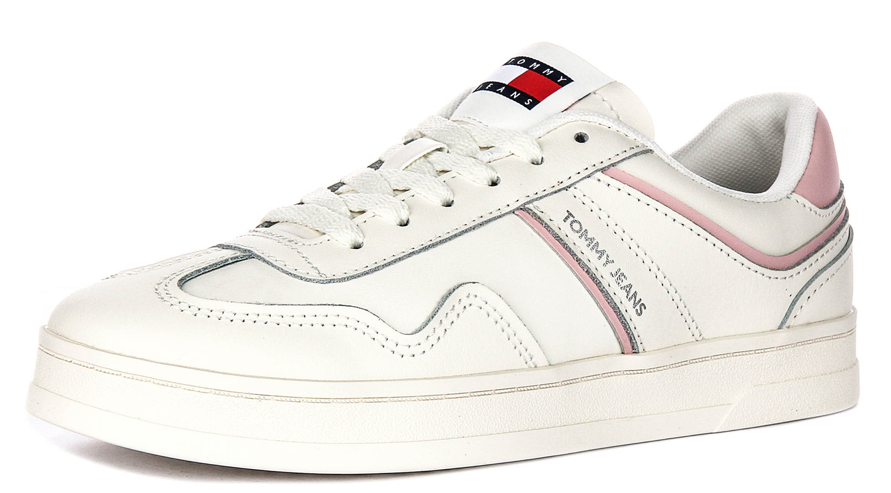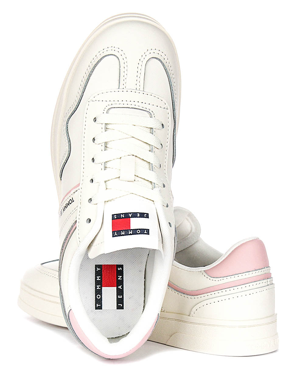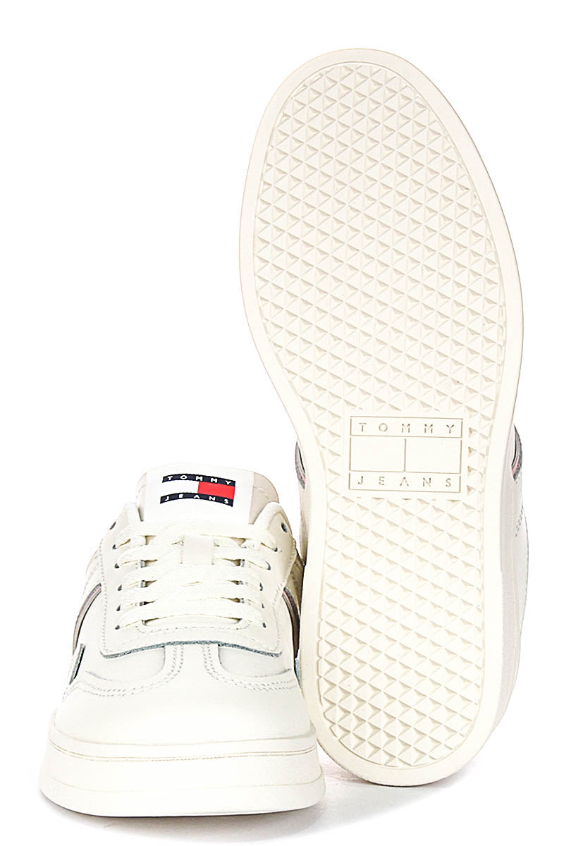 La atención al detalle es evidente en la marca Tommy Jeans, que se muestra prominentemente en la lengüeta, el panel lateral e incluso en la plantilla. Estos zapatos deportivos cuentan con un cómodo sistema de cierre con cordones, asegurando un ajuste seguro y ajustable. La suela blanca y plana proporciona un acabado clásico y un agarre práctico. Perfectos para completar tu conjunto casual con un toque de estilo icónico.