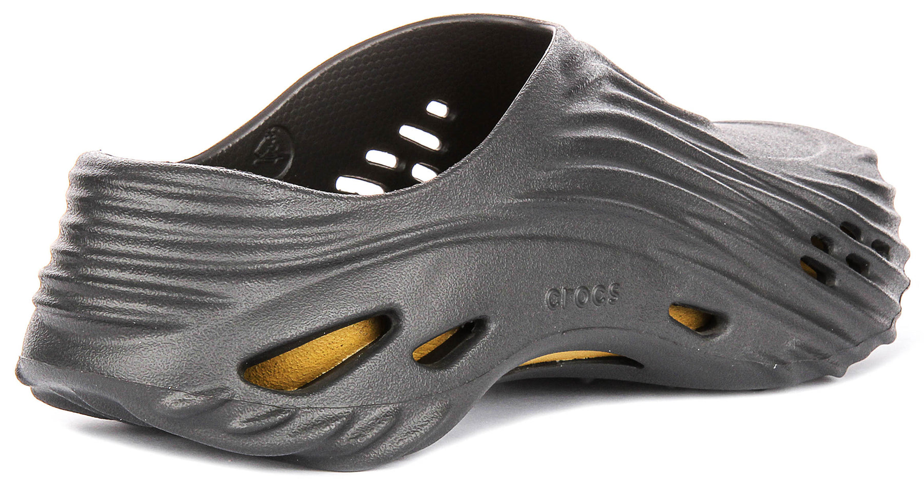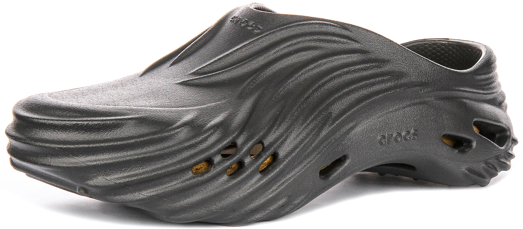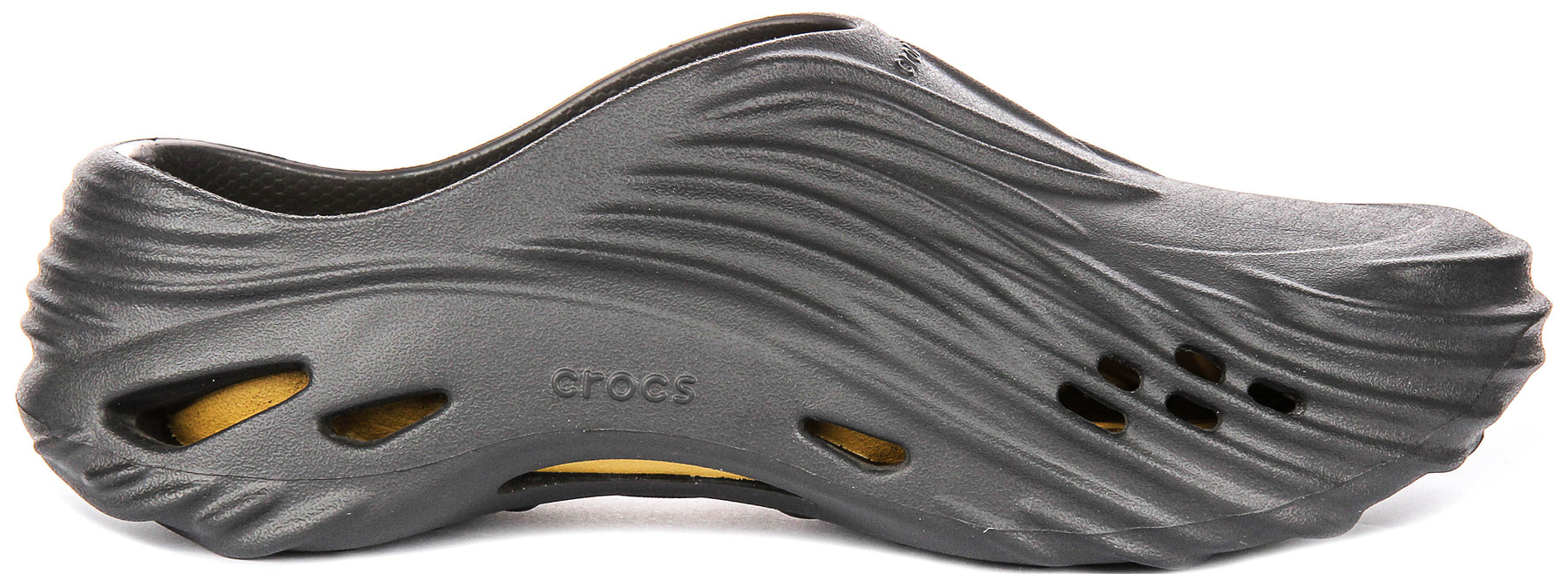 Découvrez les Crocs Echo Wave, une paire de sabots en caoutchouc unisexe qui allient un style audacieux et sculptural à un confort tout au long de la journée. Conçue par Crocs pour se démarquer, cette version moderne du sabot présente des contours fluides, évoquant des vagues, et des lignes aérodynamiques qui apportent une énergie visuelle sous tous les angles. Type de produit : Sabots. Matériau extérieur : Caoutchouc. Genre/groupe cible : Unisexe. Couleur : Tige gris charbon avec semelle de pied jaune contrastante (code couleur : Grey/Yellow).