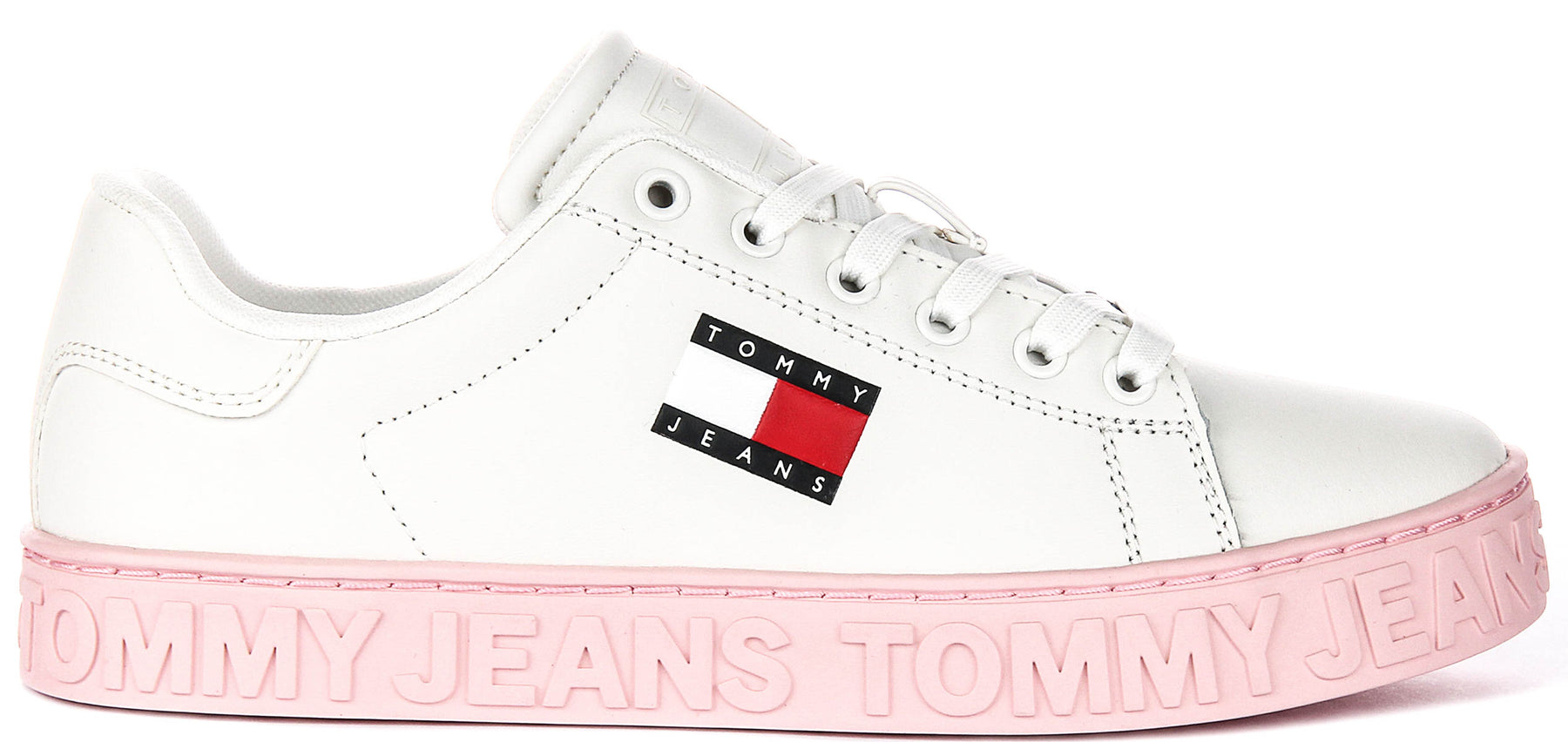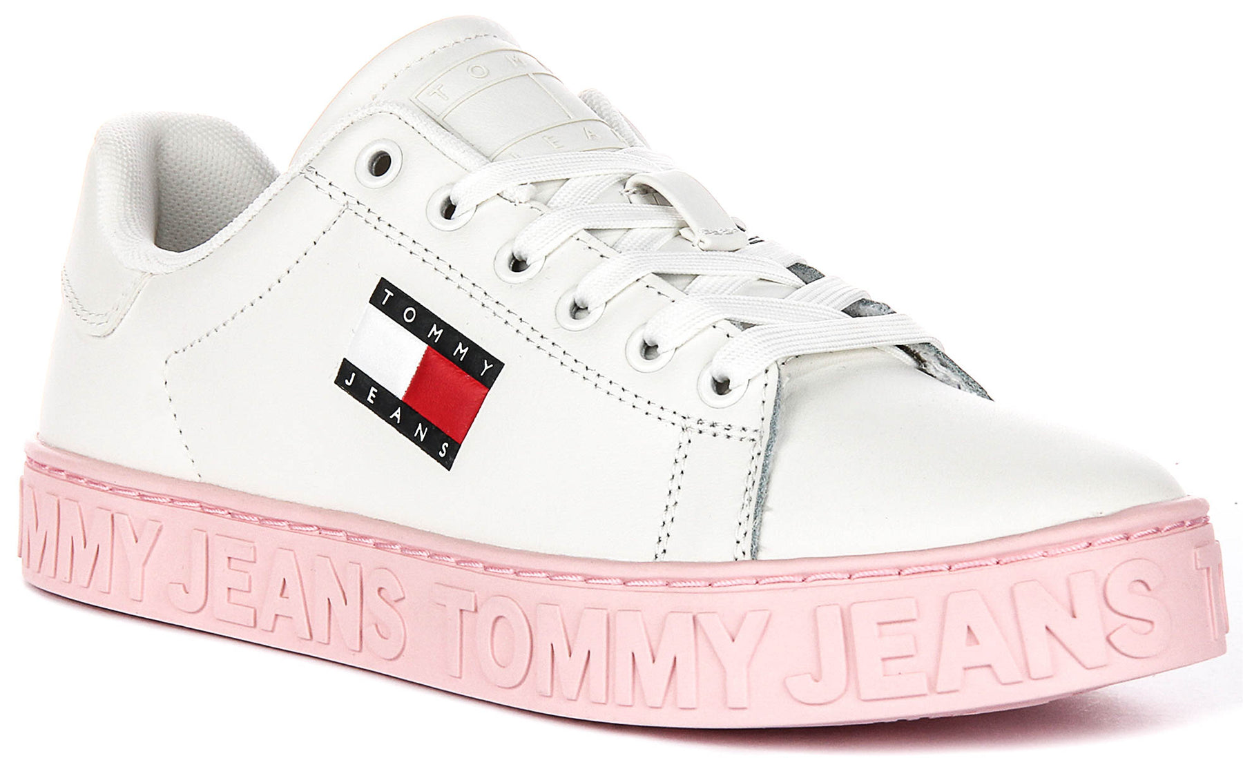 Ces baskets présentent une touche unique et ludique – la semelle en caoutchouc épaisse est ornée d’une teinte rose pastel douce, qui ajoute non seulement une touche féminine, mais distingue également ces chaussures des modèles classiques. La semelle est embossée du logo TOMMY JEANS, offrant un effet 3D saisissant et renforçant le look signature de la chaussure. La semelle extérieure est également texturée pour améliorer l’adhérence et la traction, rendant ces baskets pratiques pour un usage quotidien.
