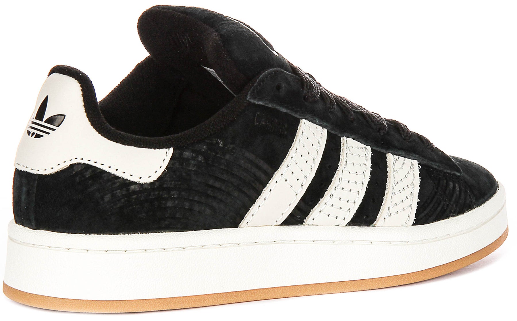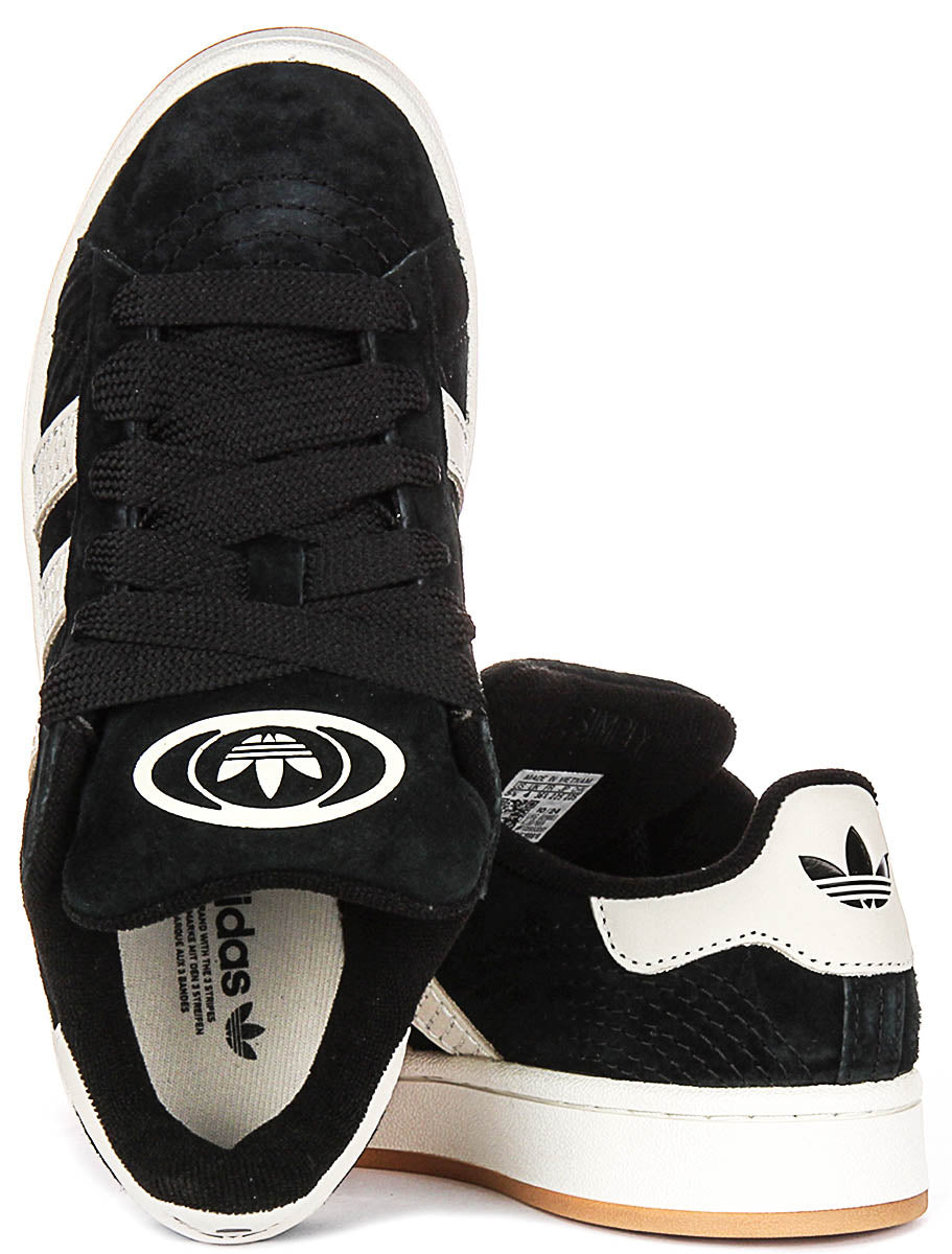 Crafted especially for women, the Adidas Campus 00S W trainers showcase the brand’s signature attention to detail. The timeless black upper is contrasted by bold white leather stripes on the side and a matching white heel tab, which is emblazoned with the instantly recognisable Adidas Trefoil logo. The classic Campus branding is subtly embossed on the side, adding a refined touch to this contemporary silhouette.