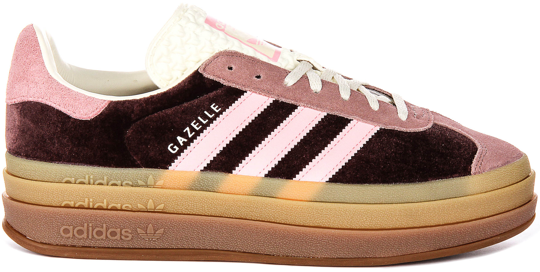Finished in a charming blend of dusty pinks and rich plum tones, with a unique colour code that makes each pair truly special, the Adidas Gazelle Bold W Velvet Trainers are the ultimate statement piece for your footwear collection. Step out in style and showcase your individuality with this bold, luxurious take on a timeless classic.